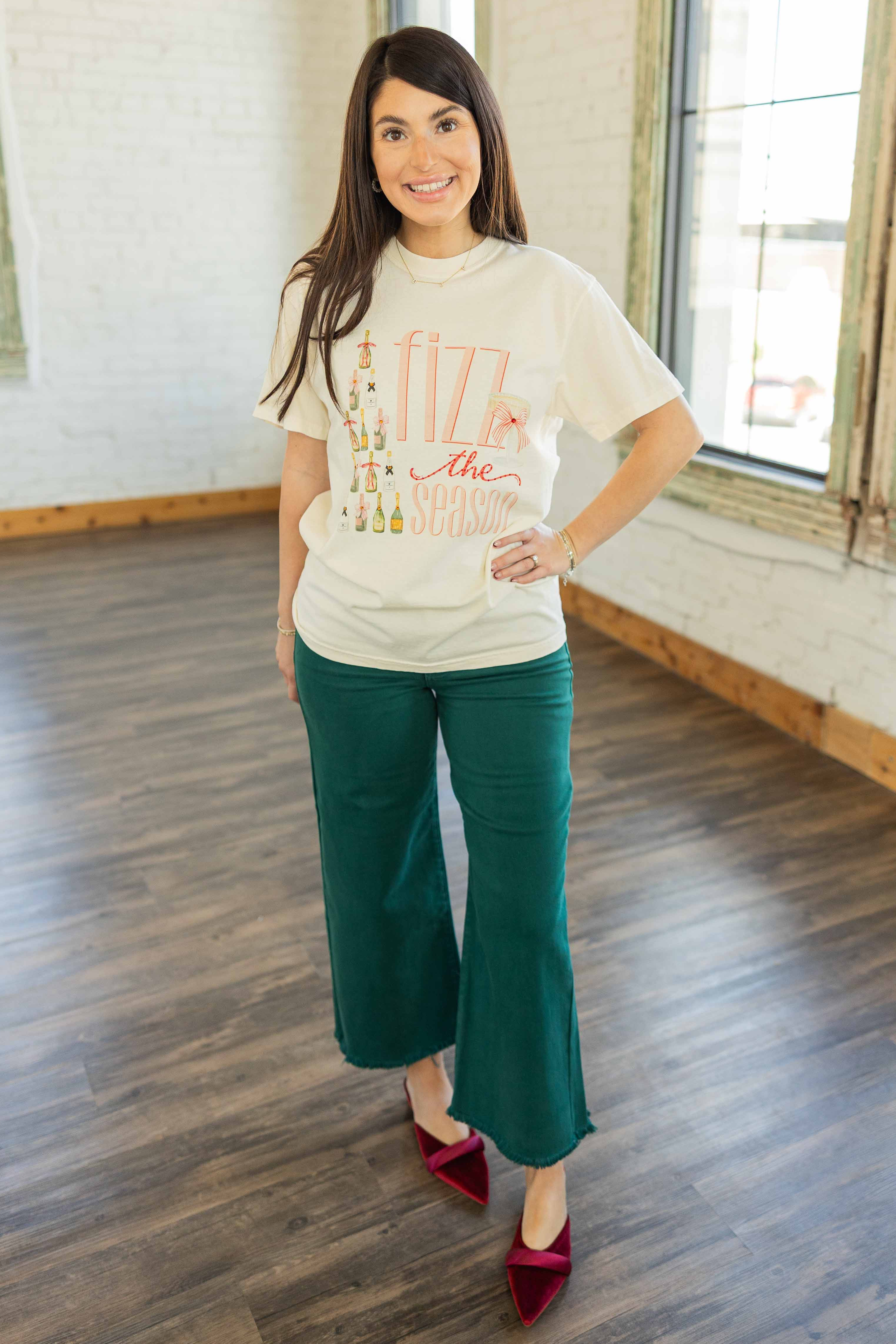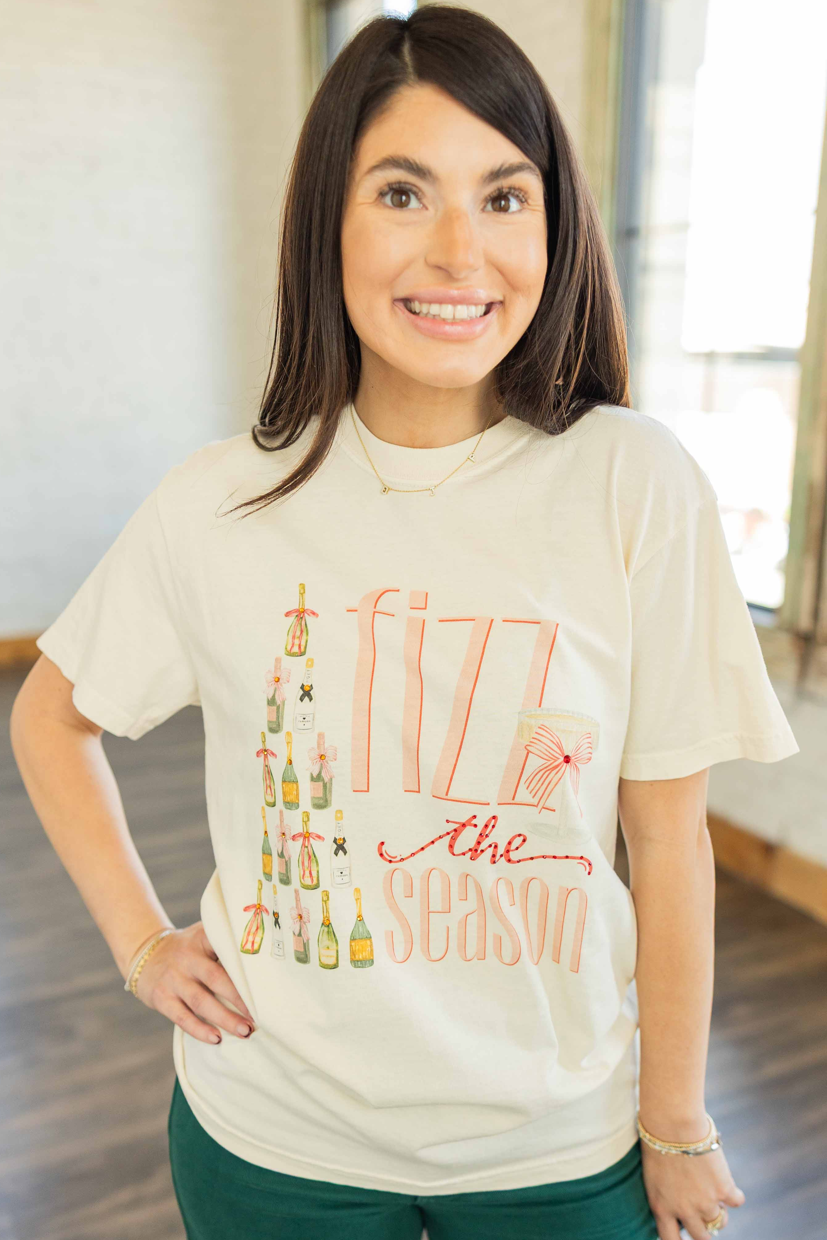 Pop, fizz, clink—holiday mode: activated. The Fizz the Season Tee is a festive favorite featuring champagne bottles stacked into a tree shape with a playful “Fizz the Season” graphic. Printed on a soft, heavyweight Comfort Colors tee, it’s equal parts cozy and cheeky—perfect for your next girls’ night or gift wrap marathon.