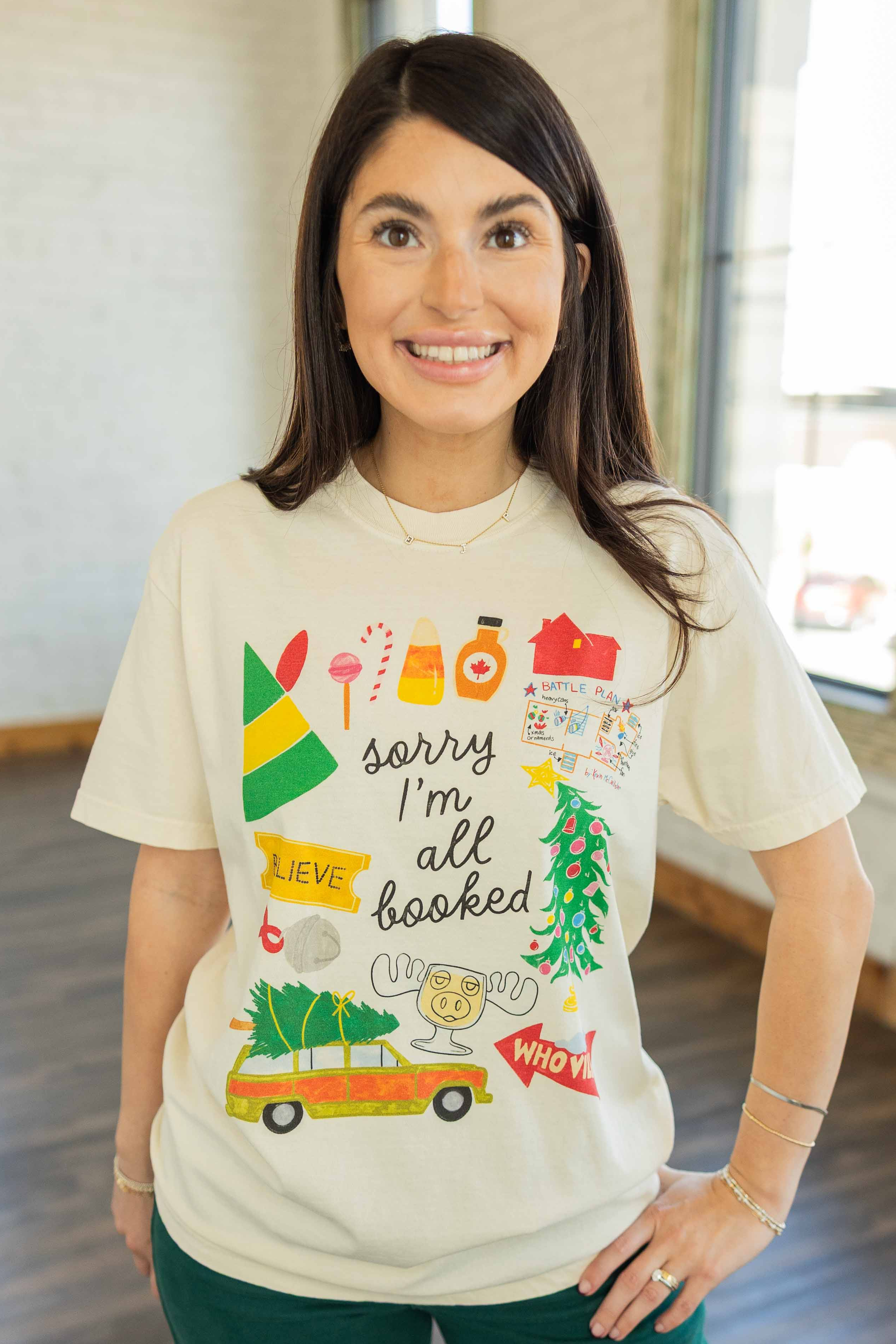 SORRY I’M ALL BOOKED CHRISTMAS ICON GRAPHIC TEE