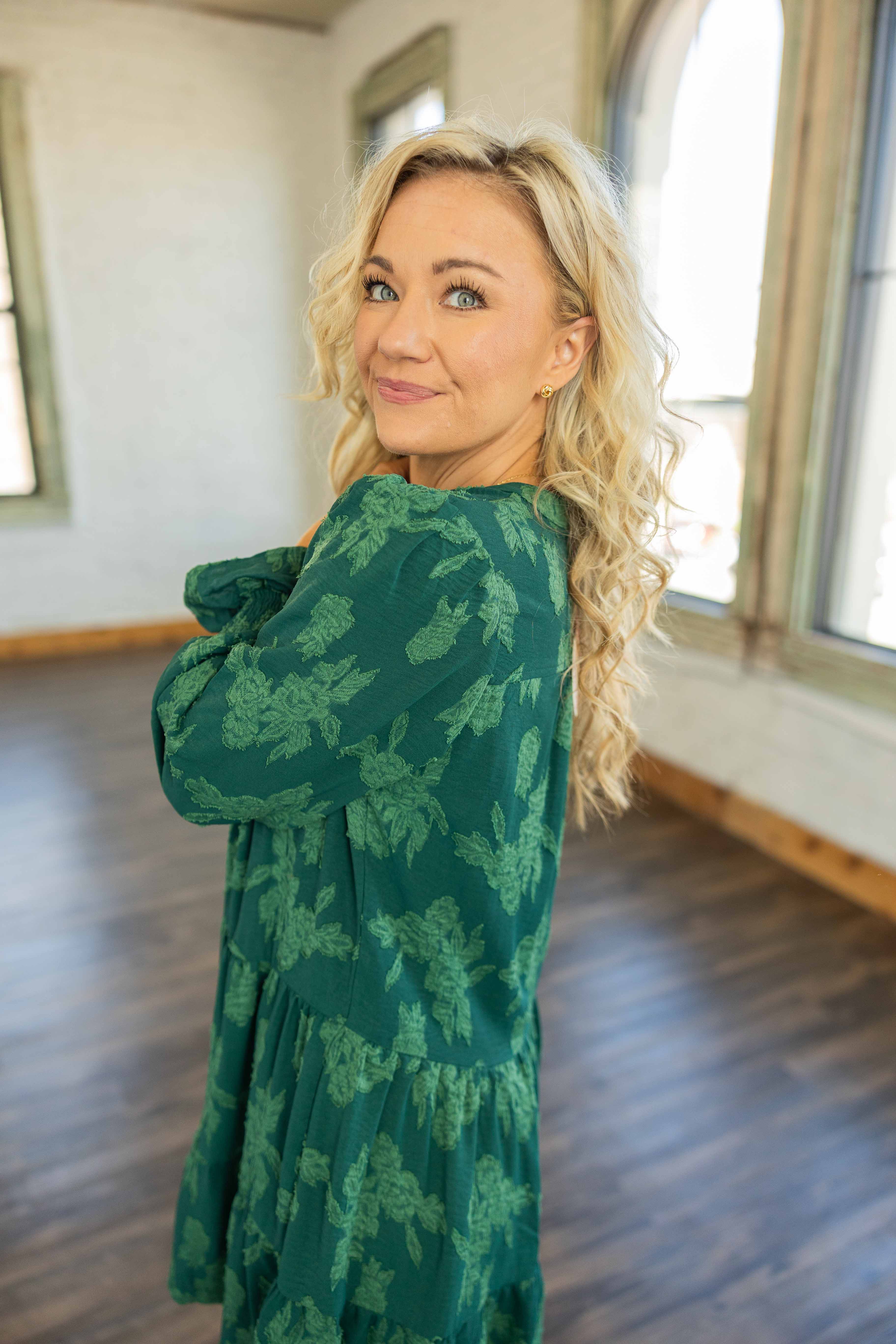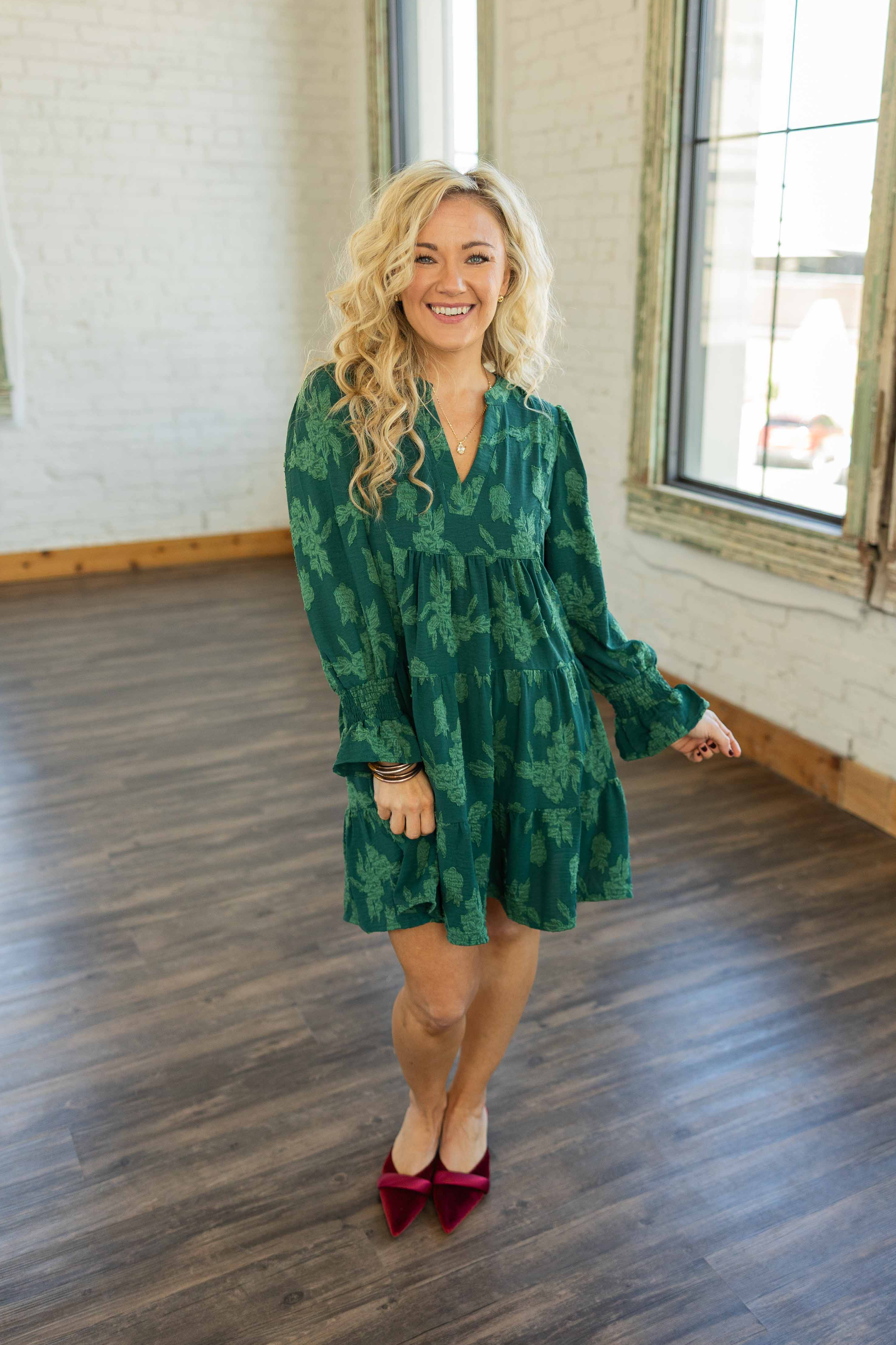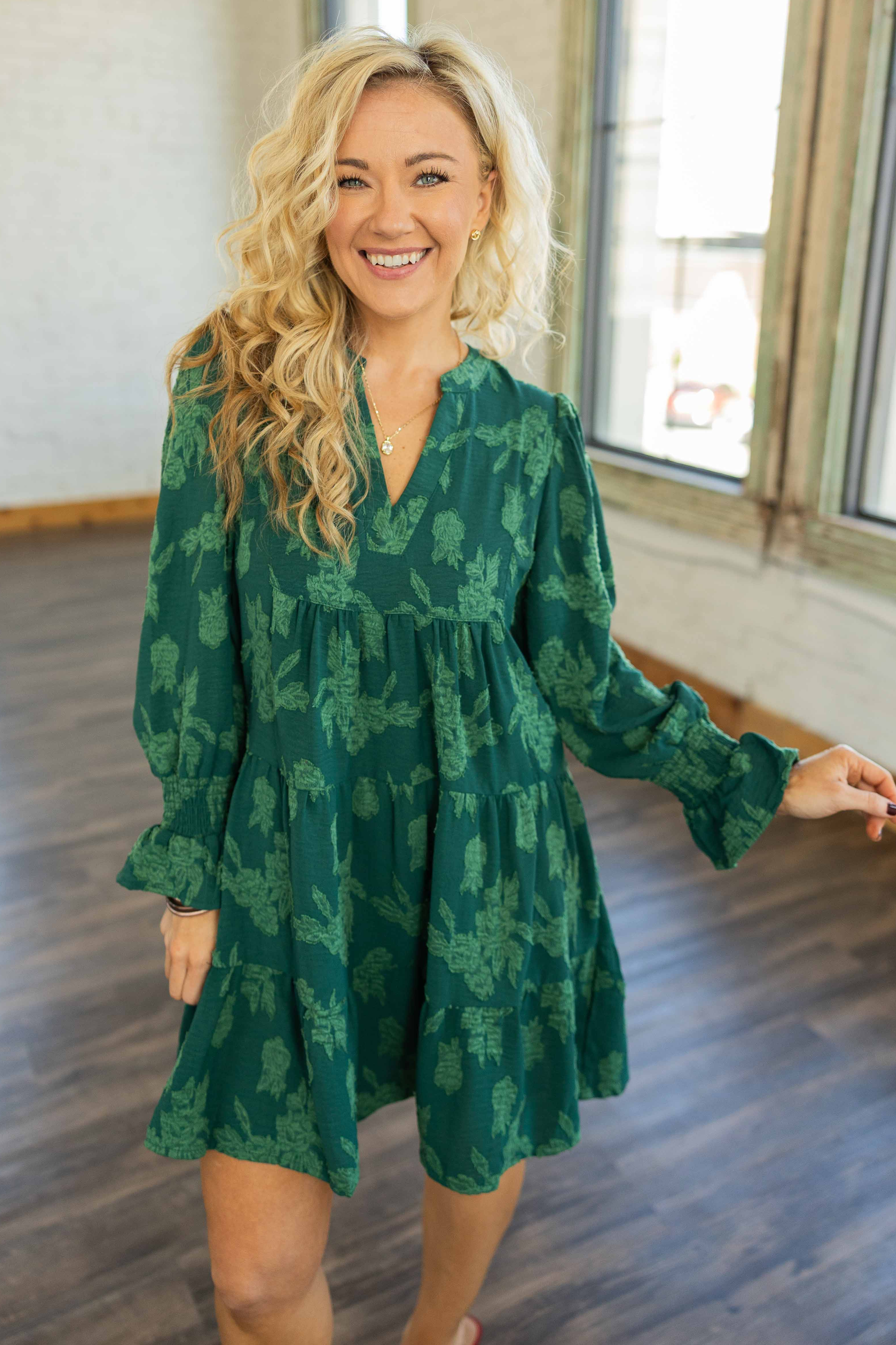 Meet your new go-to holiday green. The Zoe Dress features a textured jacquard fabric in a rich emerald hue with a relaxed tiered silhouette that’s easy to wear and even easier to love. The smocked cuffs add a touch of polish, while the flowy shape keeps things playful and comfortable all day long.