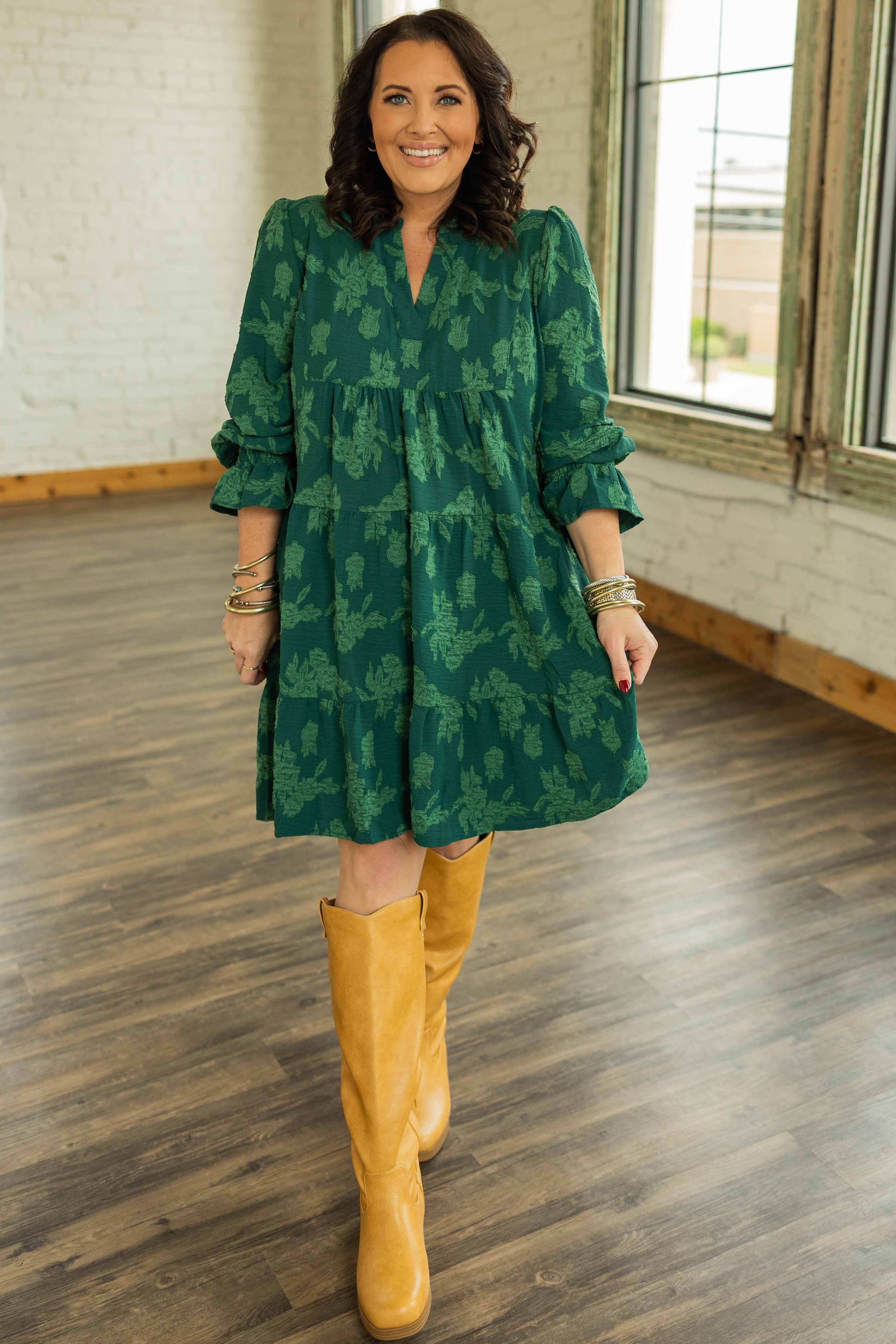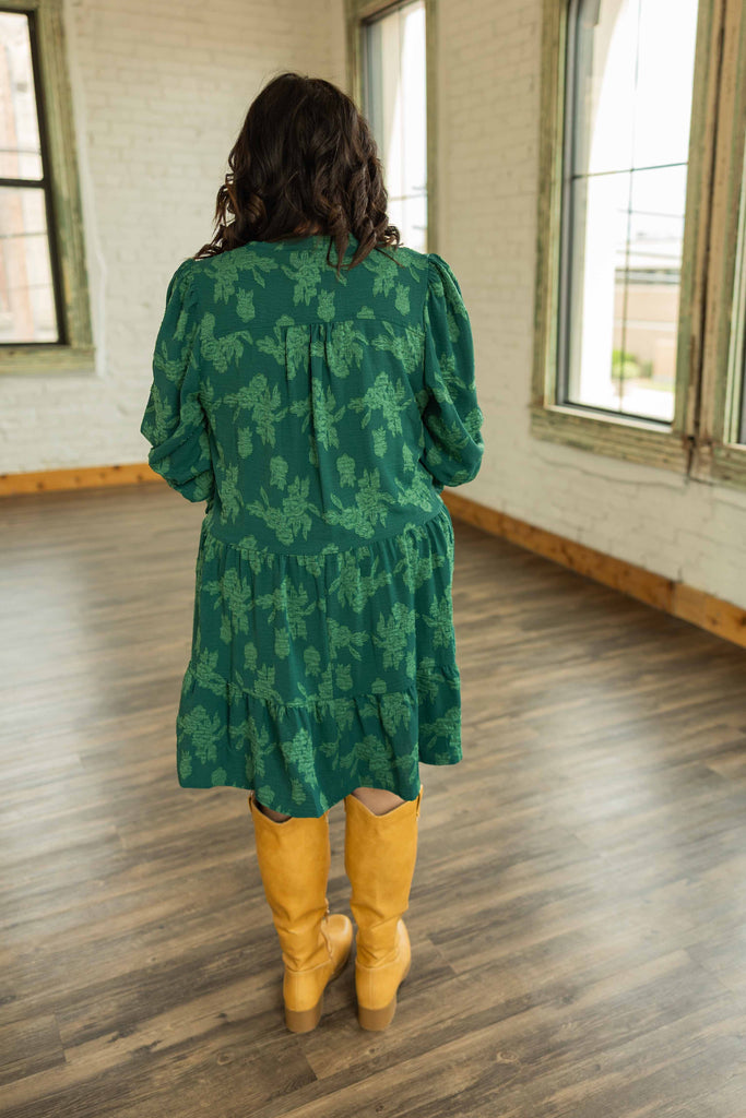 Meet your new go-to holiday green. The Zoe Plus Dress features a textured jacquard fabric in a rich emerald hue with a relaxed tiered silhouette that’s easy to wear and even easier to love. The smocked cuffs add a touch of polish, while the flowy shape keeps things playful and comfortable all day long.