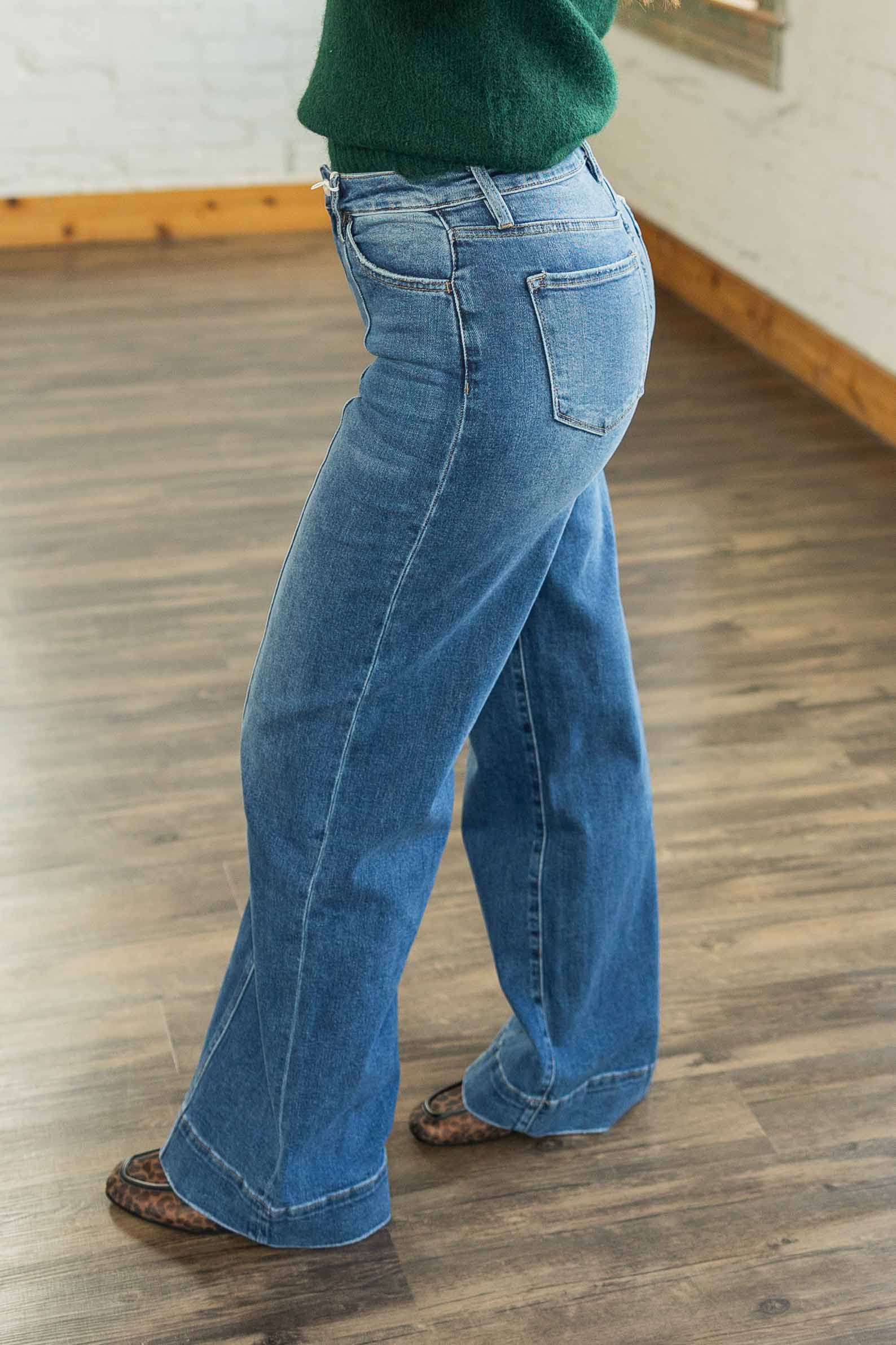 Meet the Eliza, where polished meets comfortable. These Lovervet jeans feature a trouser hem and front seam detail that give your denim a dressed-up edge. Made with comfort stretch denim, the medium wash and full-length wide leg make them perfect for pairing with everything from sweaters to blazers this fall. They’re the jeans that go from casual Friday to dinner out without skipping a beat.