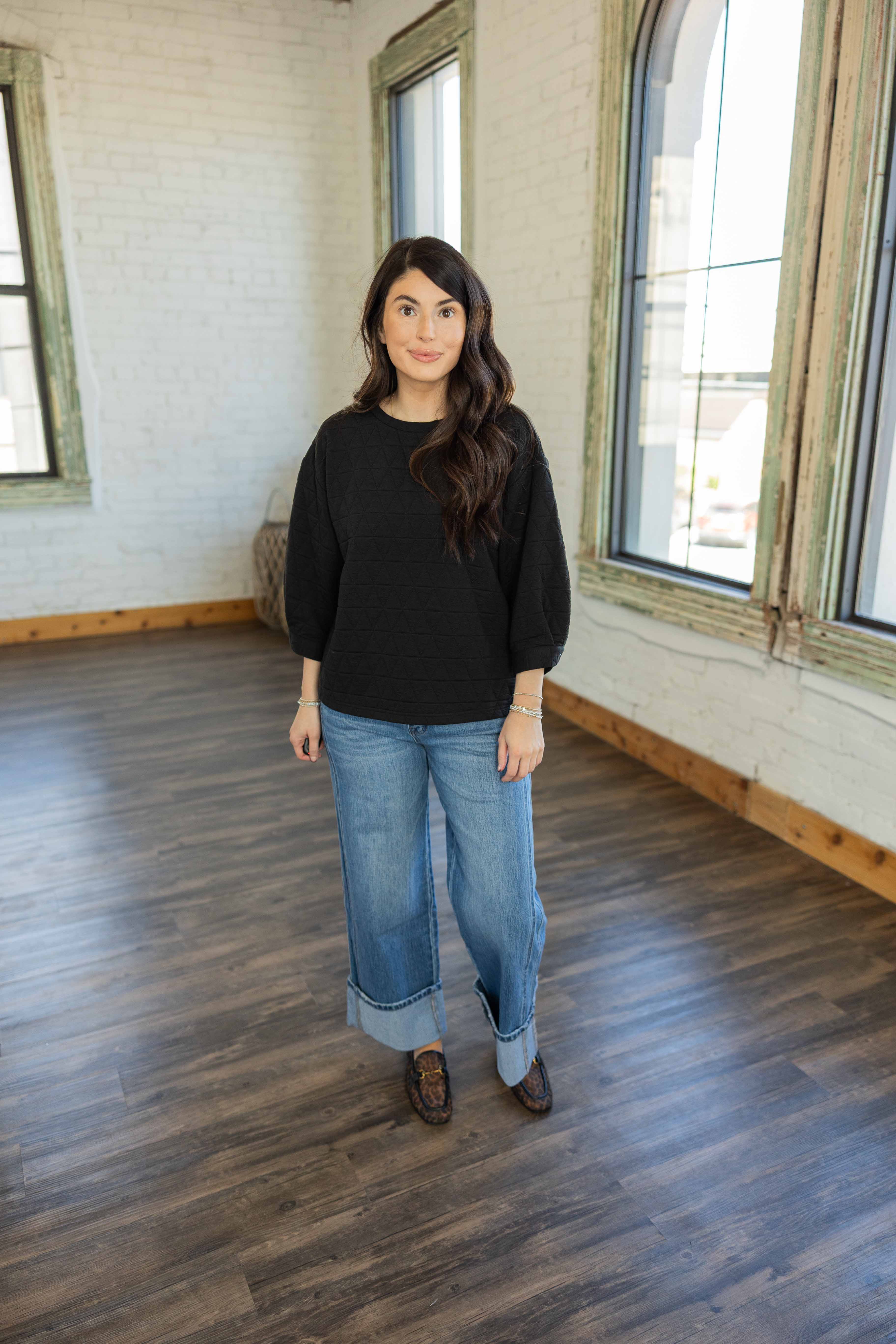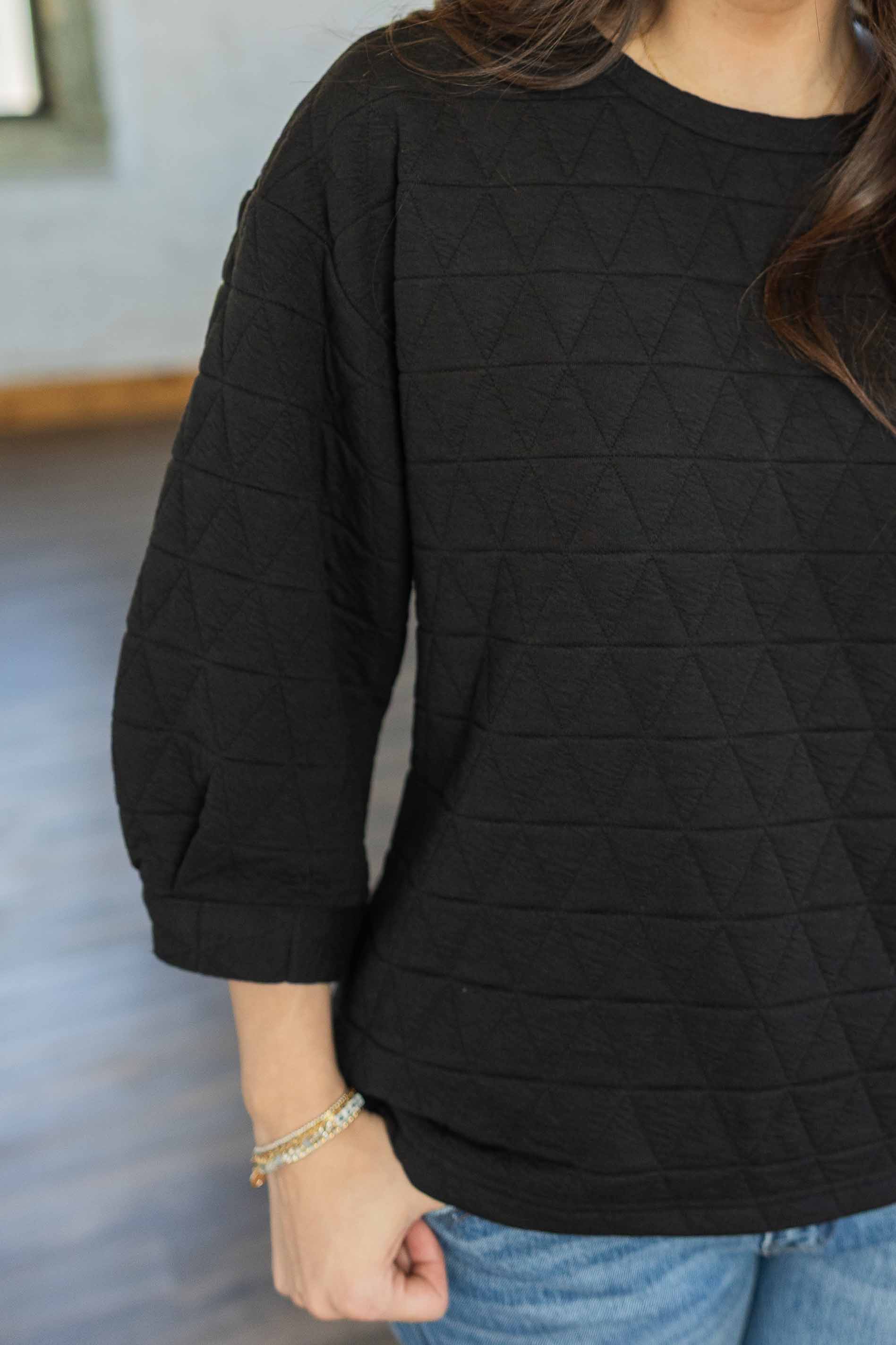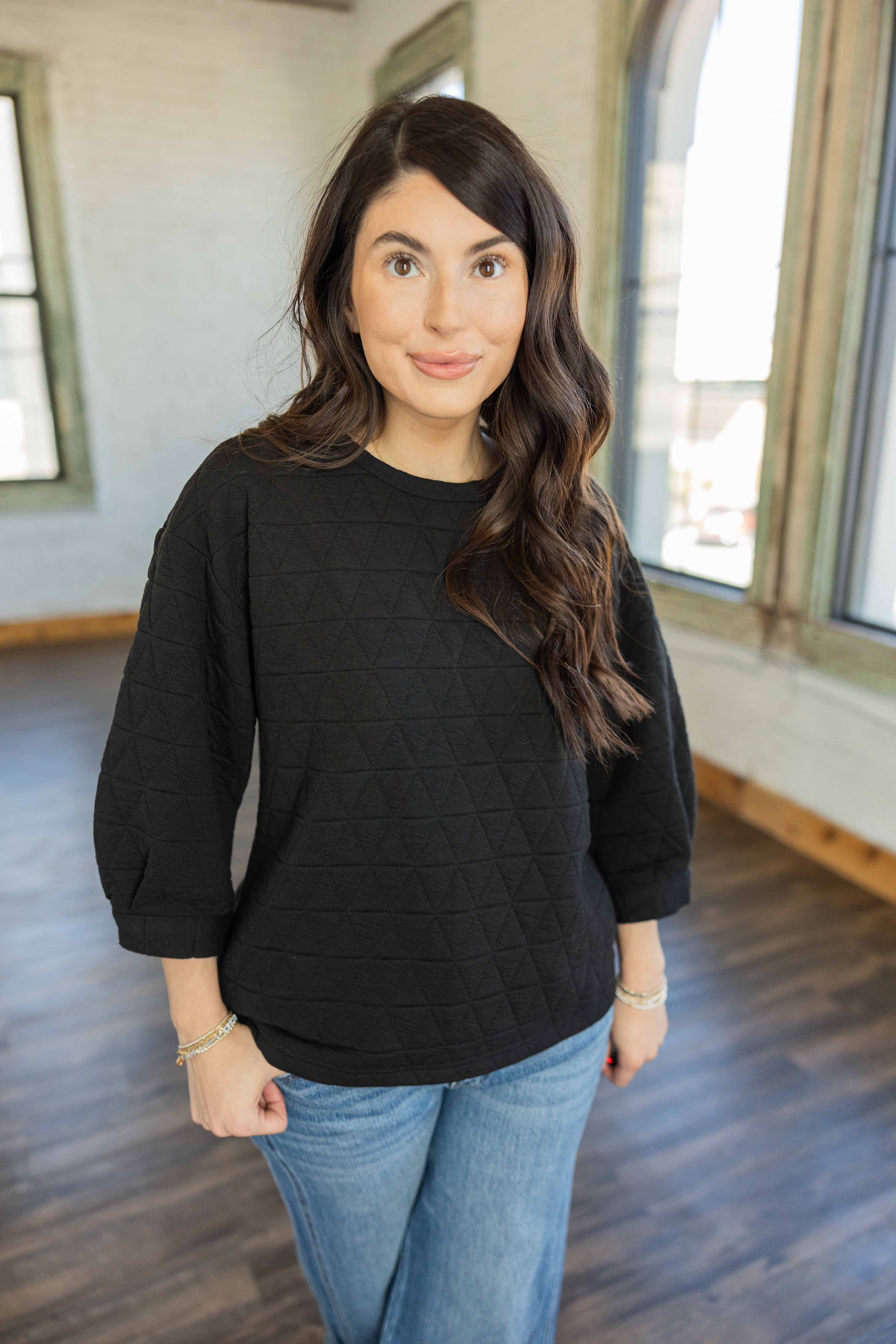 HAVEN QUILTED 3/4 SLEEVE PULLOVER TOP