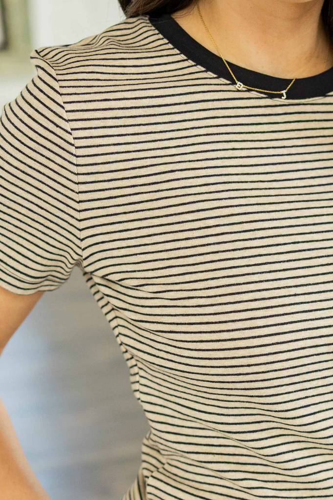 A little retro, a little classic, and a whole lot of easy. The Judy Everyday Striped Tee keeps it simple with soft stretch cotton and a clean stripe pattern. The contrast black neckline adds that pop of detail you didn’t know you needed. It’s an everyday grab-and-go piece that never misses.