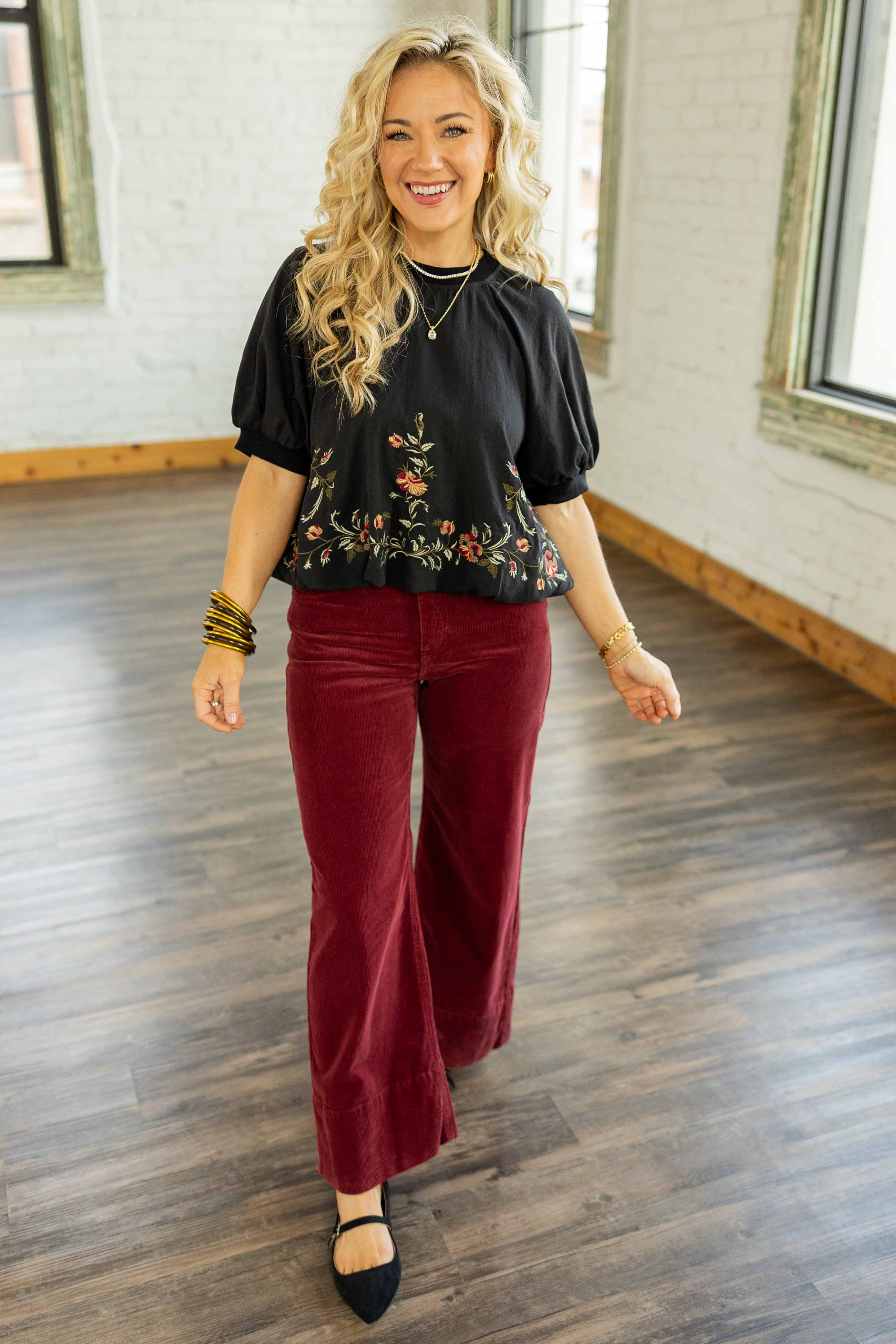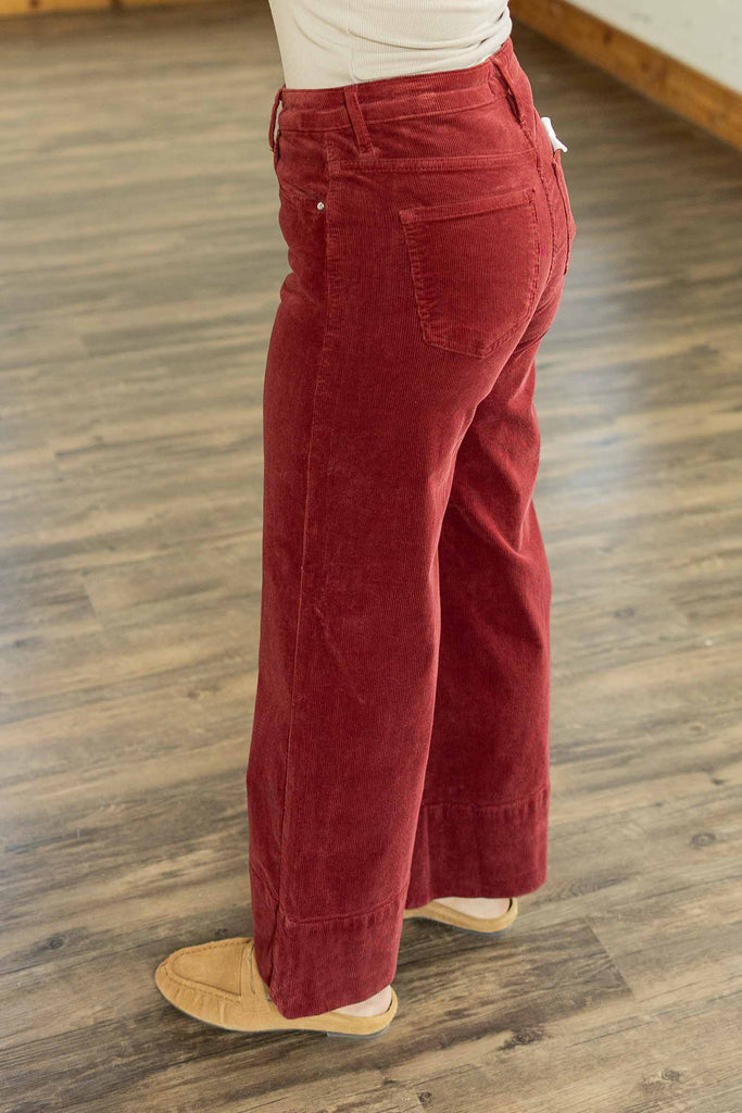 Retro texture meets modern fit. The Winnie Corduroy Jeans feature a rich wine-maroon color that feels perfect for fall, crafted from soft stretch corduroy that moves with you. The high rise and cropped trouser hem give them a polished shape with a laid-back finish. Pair them with sneakers for casual days or boots for a night out.