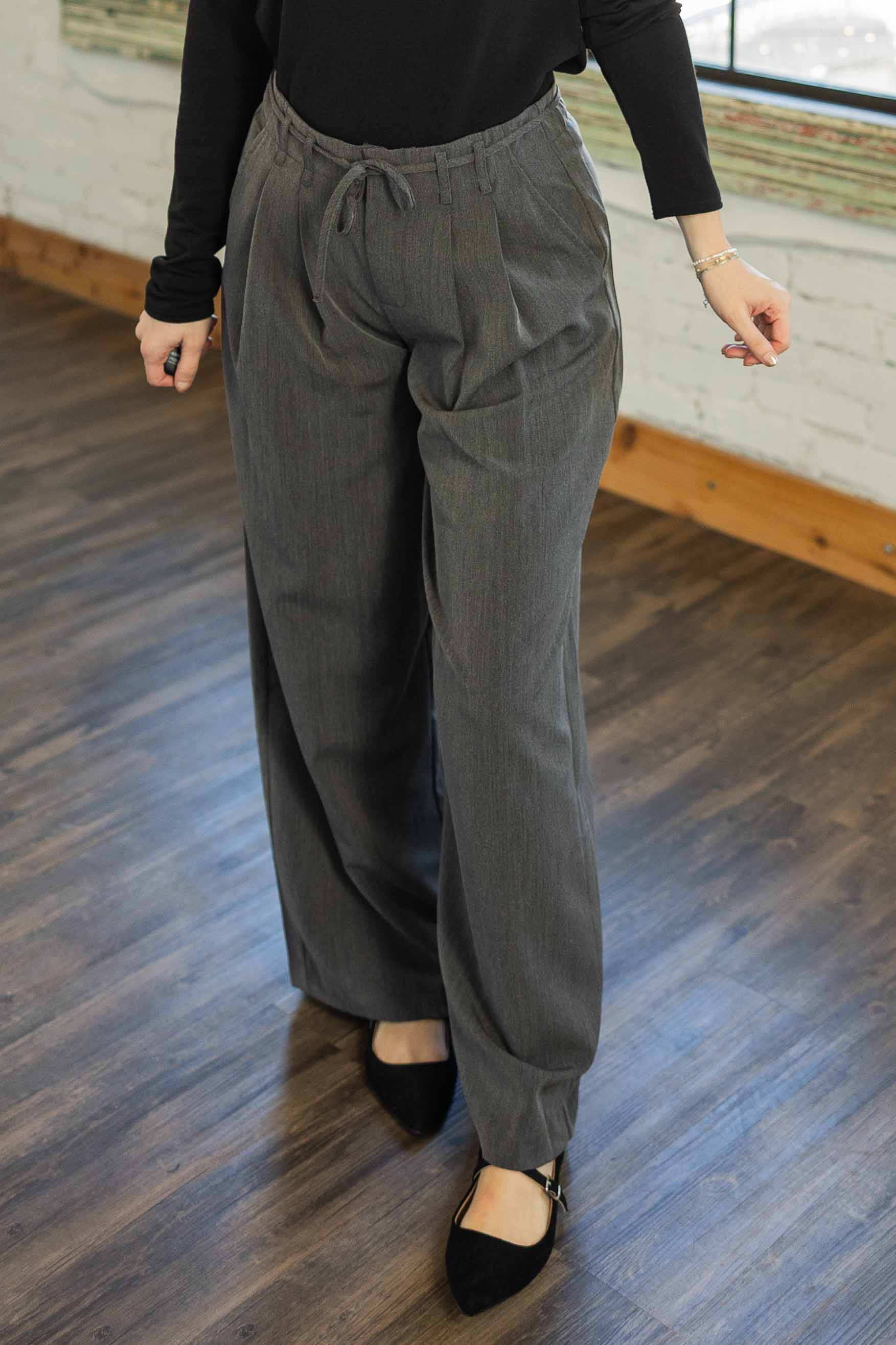 These are the pants you put on when you want to feel put together but still breathe. Flowy. Drapey. Comfortable in the best way. The pleated front adds shape, the wide leg gives movement, and the drawstring waist keeps things easy. The charcoal gray color works for work or weekends without trying too hard.