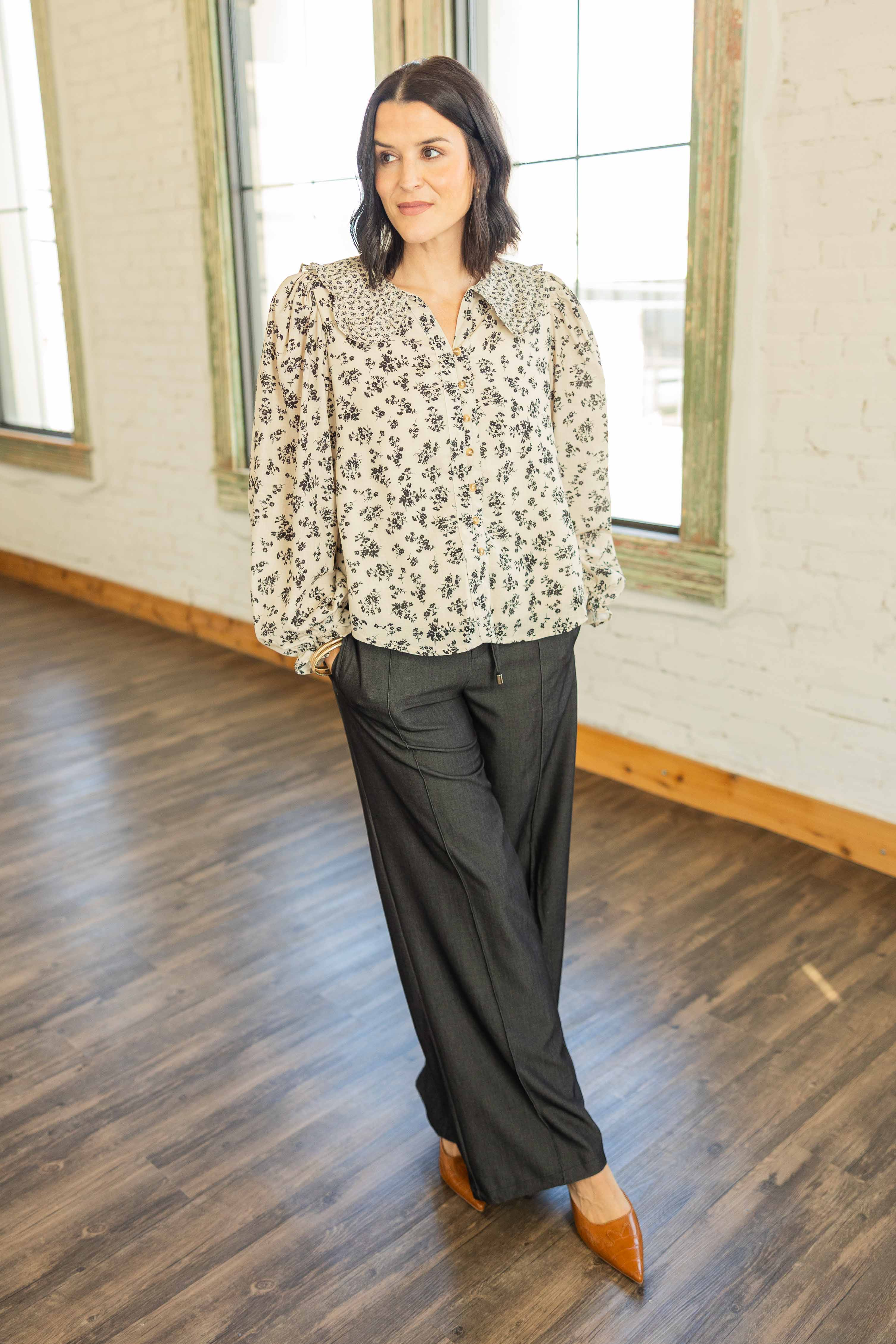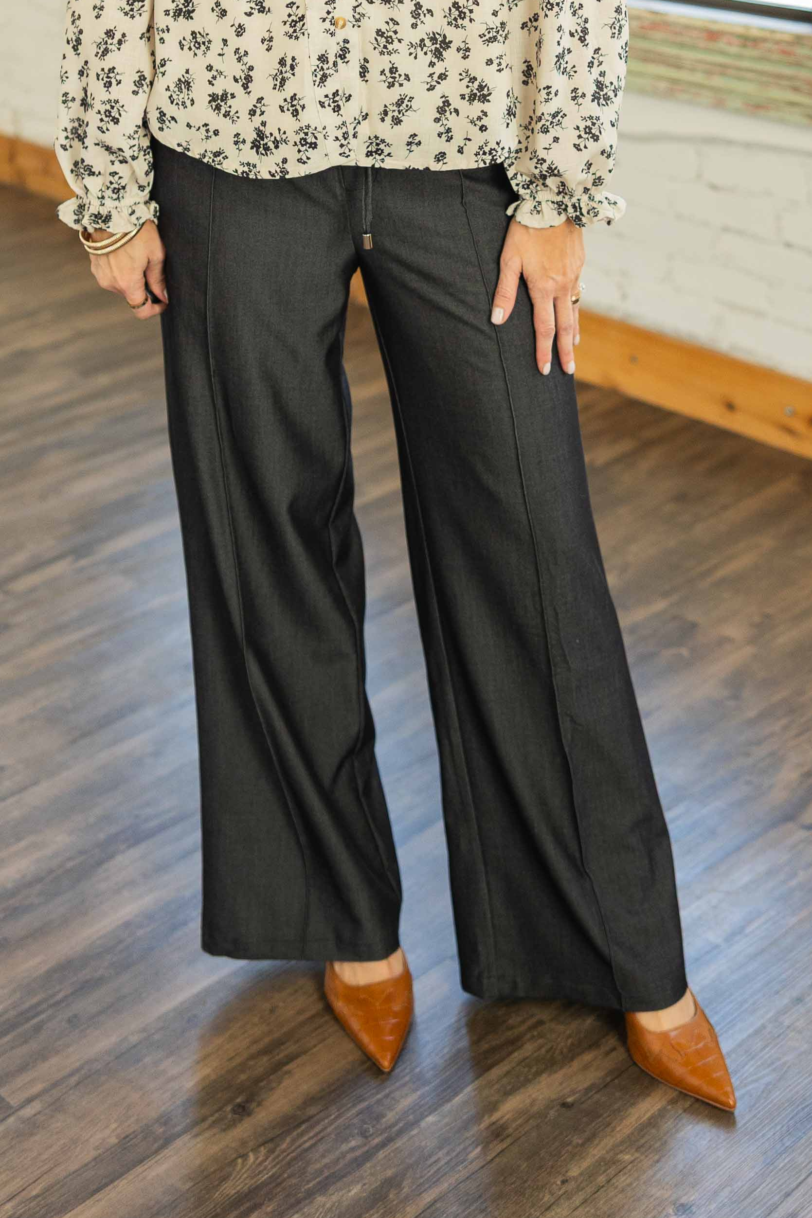 These pants are all about comfort with intention. The Luciana has a roomy wide leg that drapes beautifully without looking sloppy. The elastic waist with a built in drawstring keeps the fit flexible and easy, while the fabric has stretch that moves with you. Pockets seal the deal. These are the kind of pants you put on once and then start planning outfits around.