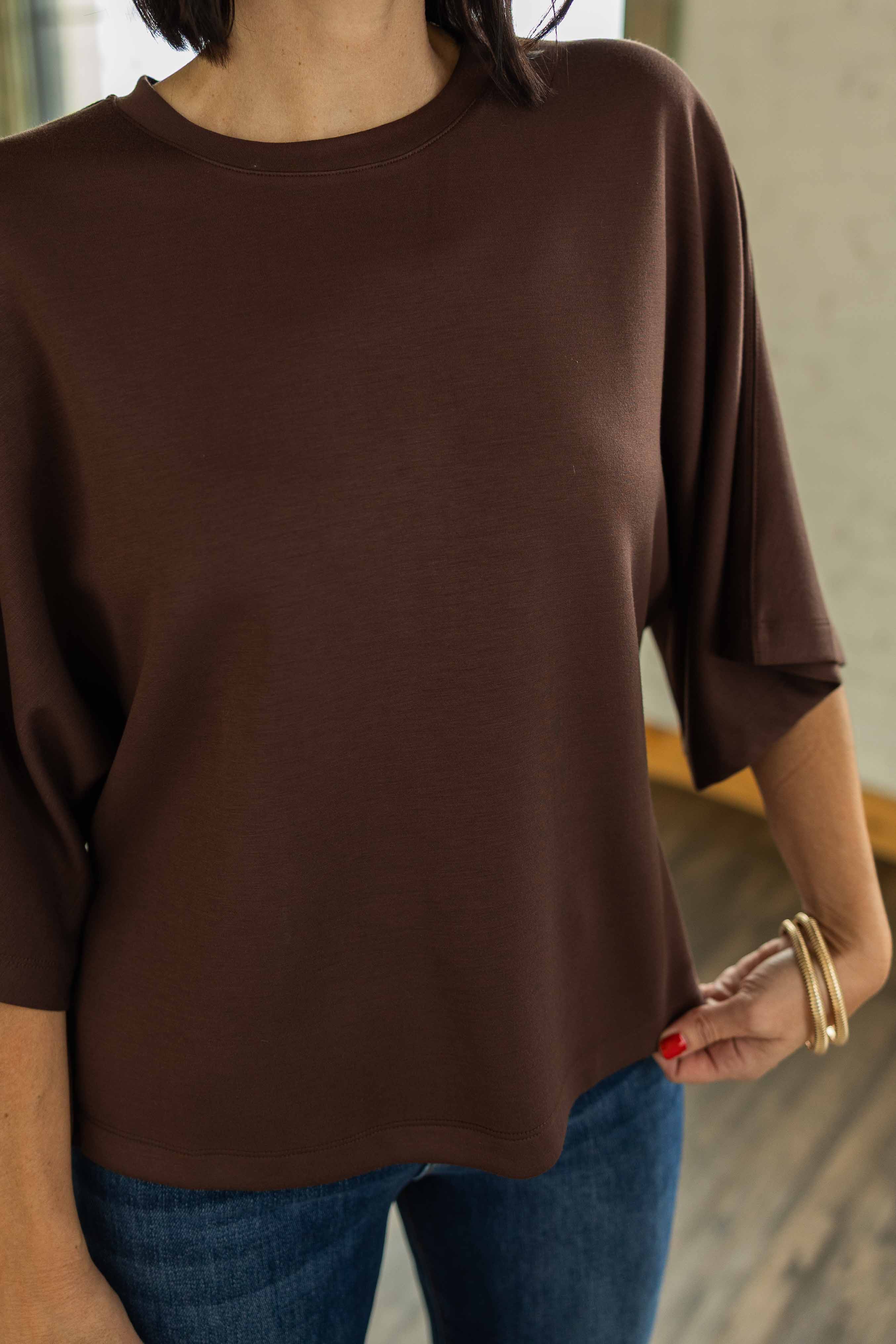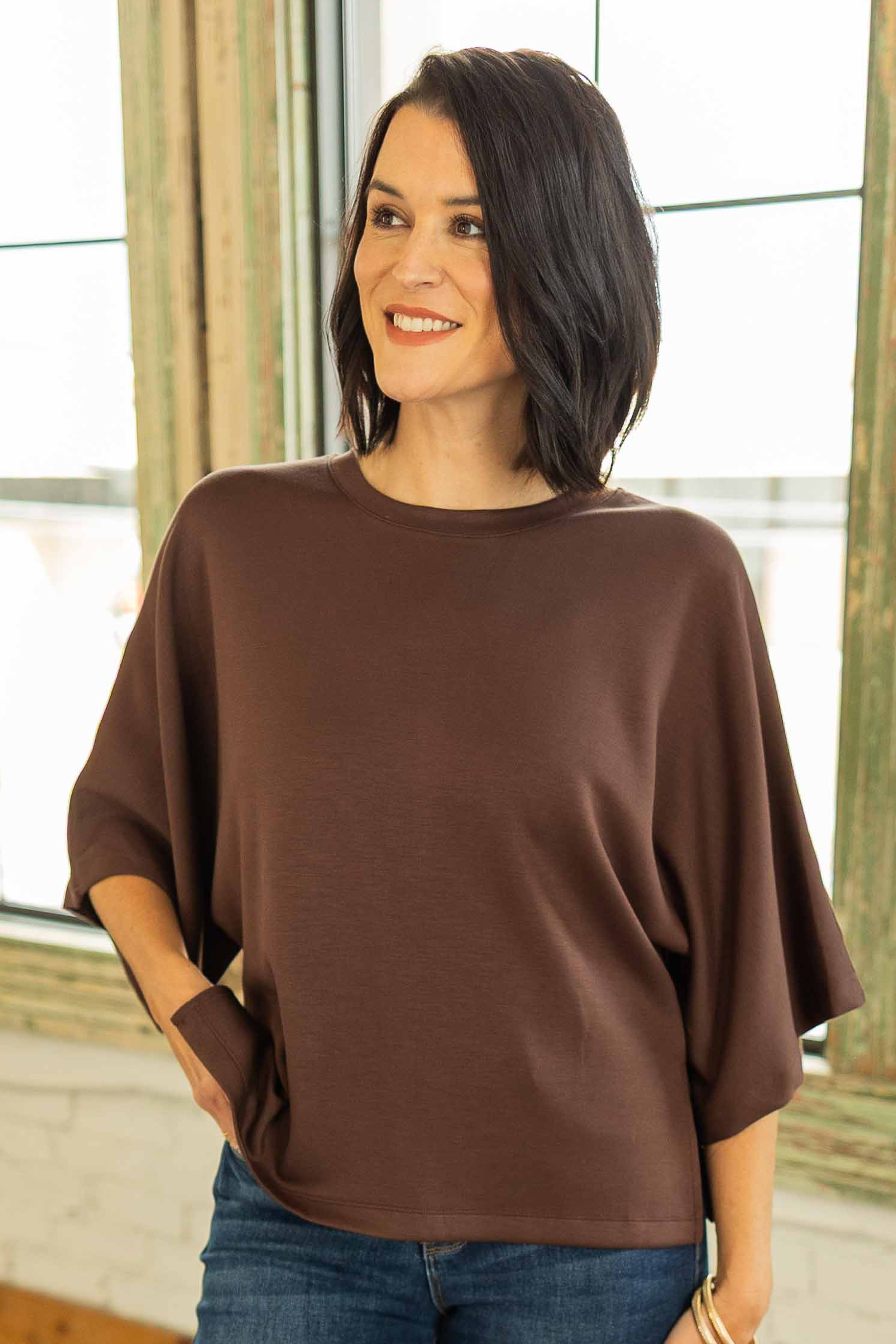 ARIELLE BOXY 3/4 SLEEVE SCUBA STYLE TOP