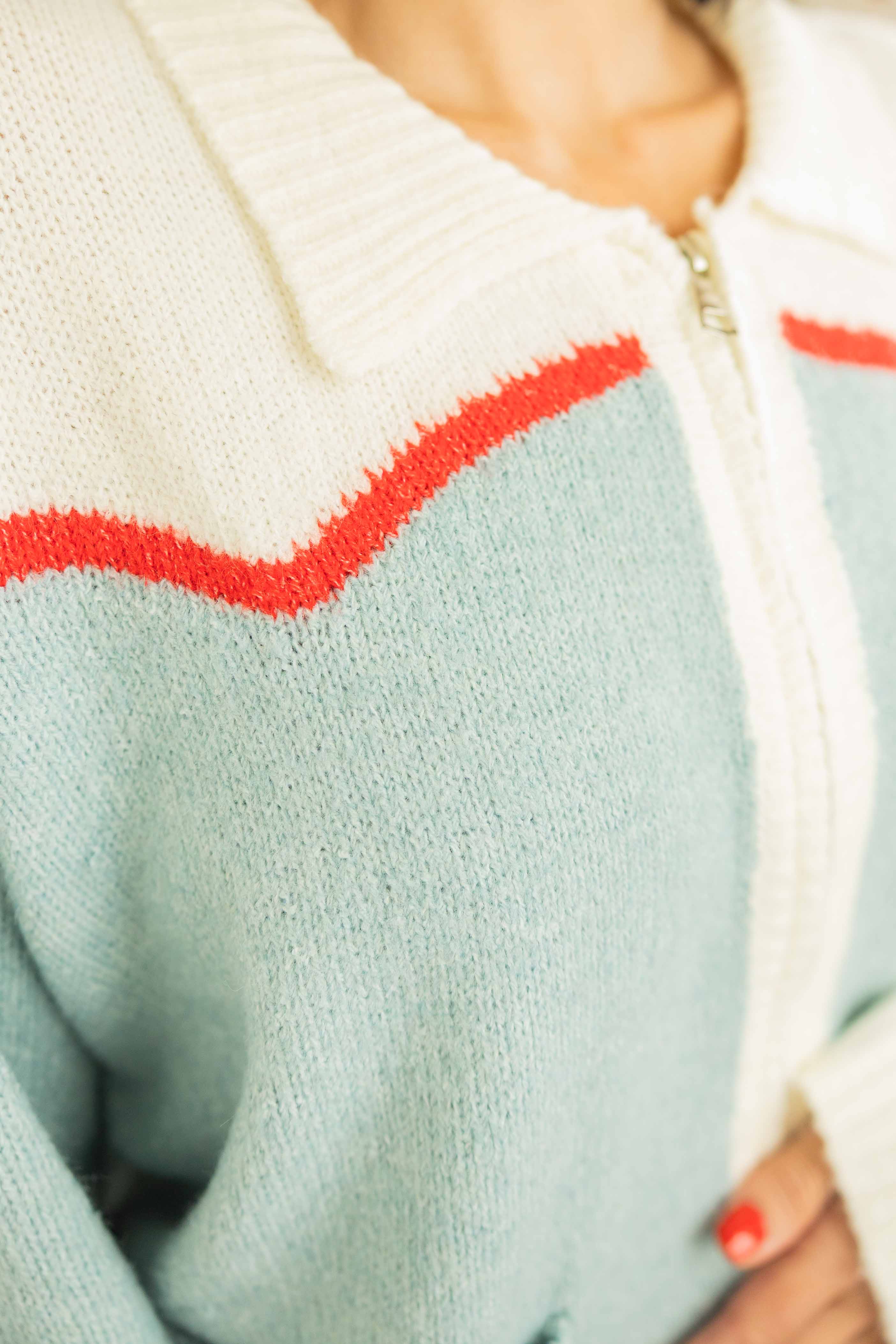 ZARIA RODEO COWBOY ZIP FRONT KNIT SWEATER