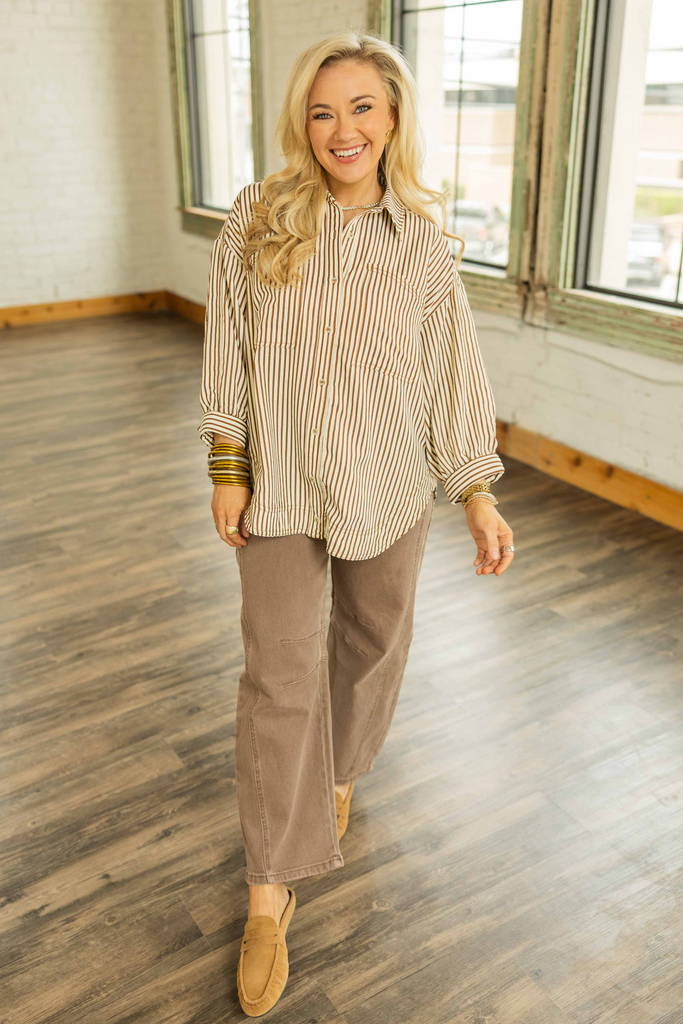 Make room in your closet, because this striped number is coming in hot. The Samantha Top brings a relaxed, oversized fit with a high-low hem and crisp shirt collar—giving you that effortlessly styled look without lifting a finger. Toss it on with jeans or layer it over leggings for a comfy, elevated vibe. It’s giving “casual cool” in the best way possible.