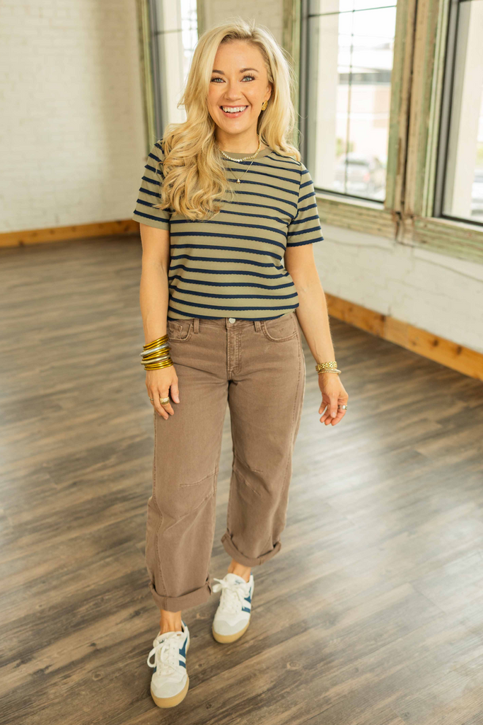 A no-fuss essential with just the right amount of personality. The TALIA STRIPED BASIC TOP features a textured stripe pattern on a comfy, easy-to-style silhouette. Pair it with denim, trousers, or layered under jackets—she’s the versatile favorite your closet didn’t know it was missing.