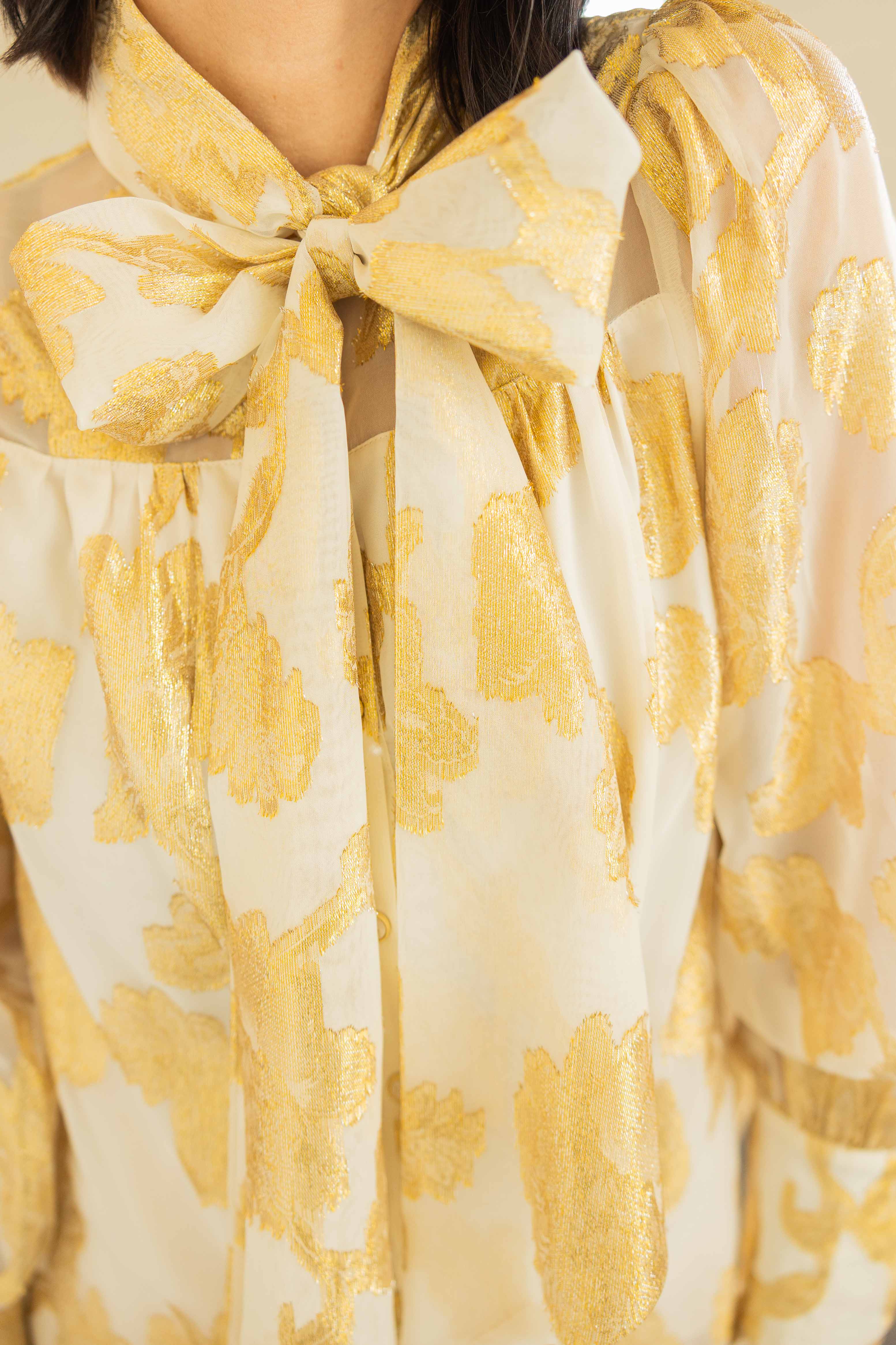 ANGELICA METALLIC JACQUARD CHIFFON BLOUSE WITH BOW