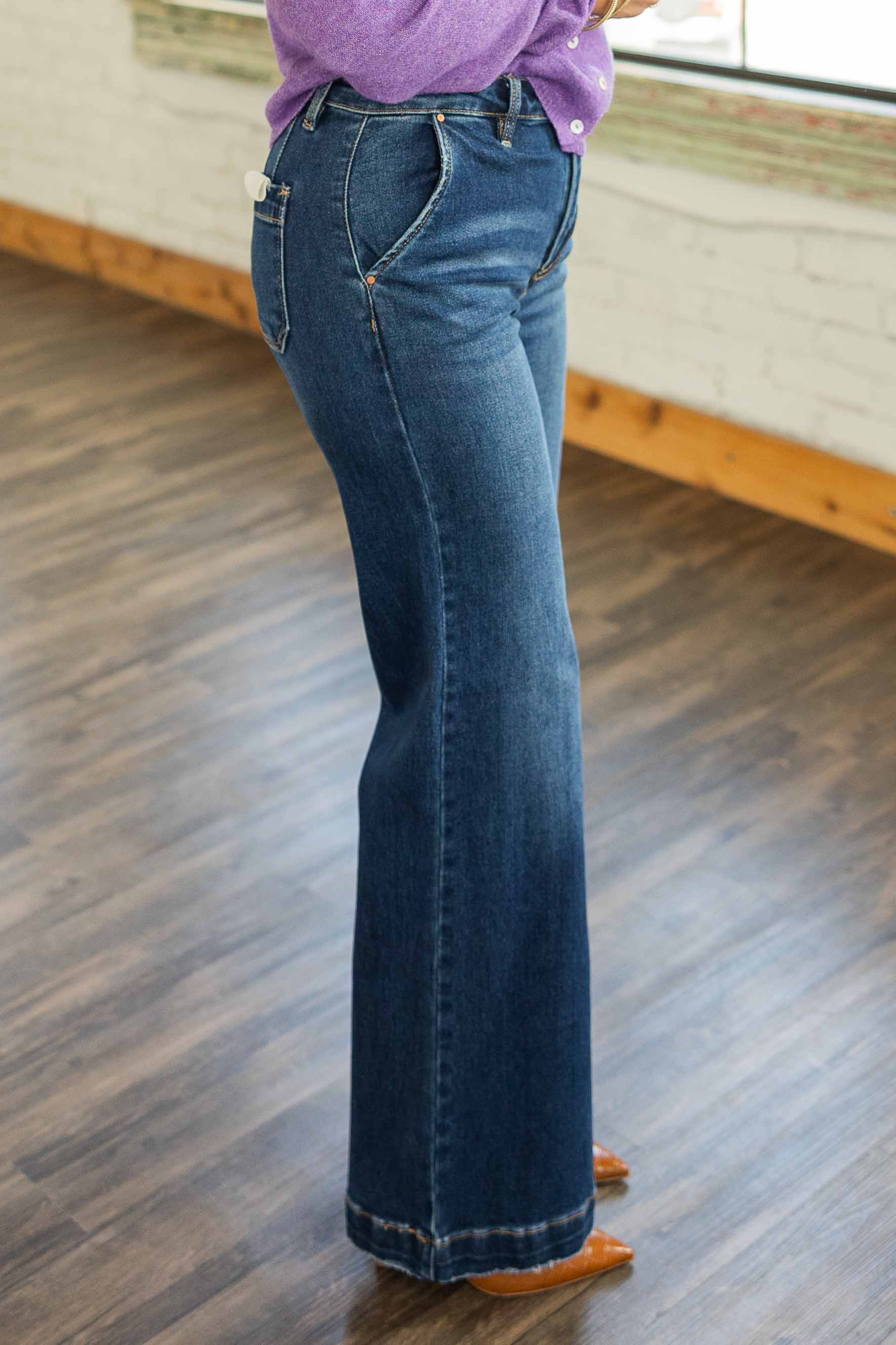 These are the jeans you put on and immediately stand taller. The Leighton has that clean trouser look with the comfort of your favorite denim. The wide leg is flattering without feeling oversized, and the comfort stretch keeps everything easy all day long. Slanted front patch pockets give them a polished vibe that works just as well dressed up as they do casual. Structured. Comfortable. Very wearable.