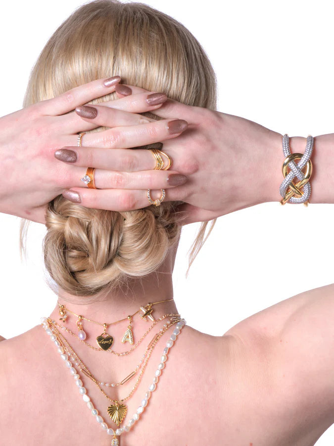- Bold and smooth, this timeless bracelet features a sculpted intertwined knot with pavé-encrusted crystals. The polished gold-filled finish blends seamlessly with the crystal-studded end in a knot, creating an impactful statement.
