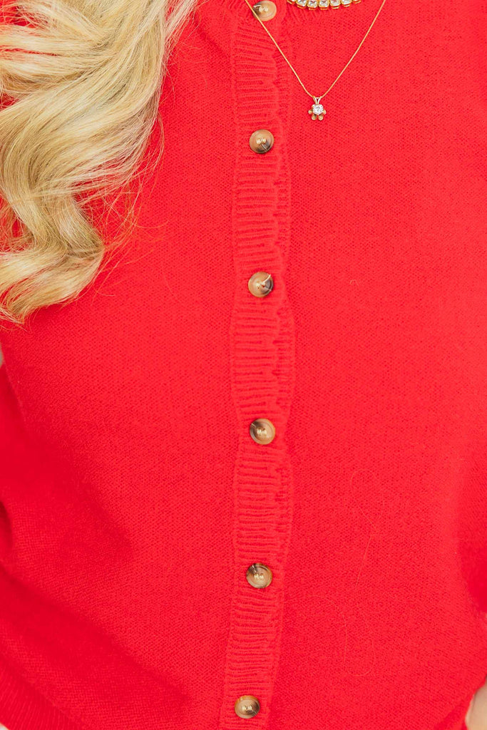 Bright and bold, the Brielle Button Up Cardigan comes in a striking red knit that makes everyday outfits feel instantly elevated. The scalloped trim and short puff sleeves give it a feminine touch, while the lightweight stretch fabric keeps it comfy and easy to wear. Whether you button it up as a top or layer it over a cami, this cardigan brings the pop of color your fall wardrobe needs.