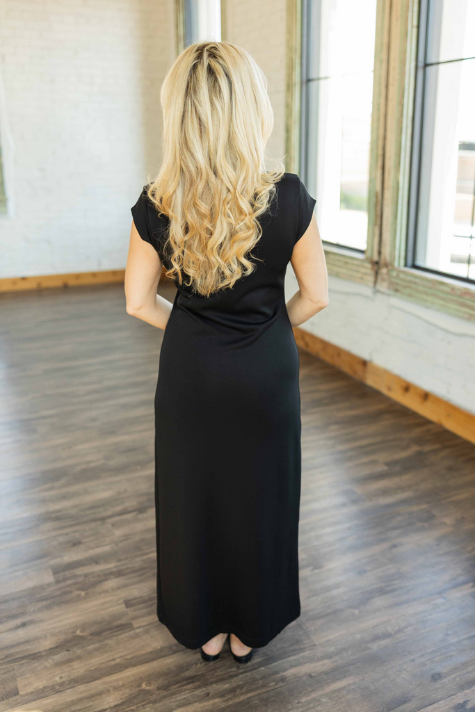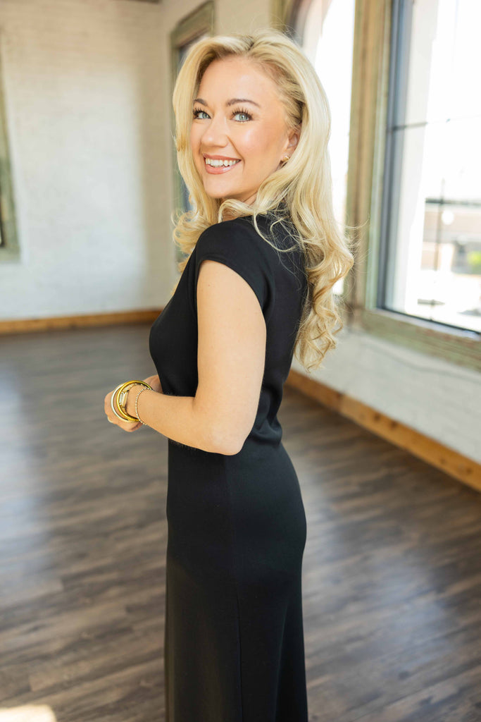 The Heidi Dress proves that less really is more. This sleek black midi features a classic crew neckline and subtle cap sleeves for a timeless silhouette. The pullover design makes it an easy throw-on piece while the knit fabric keeps it soft and lightweight. A true wardrobe staple, it’s the kind of dress you can wear with sneakers for errands or swap to heels for dinner out.