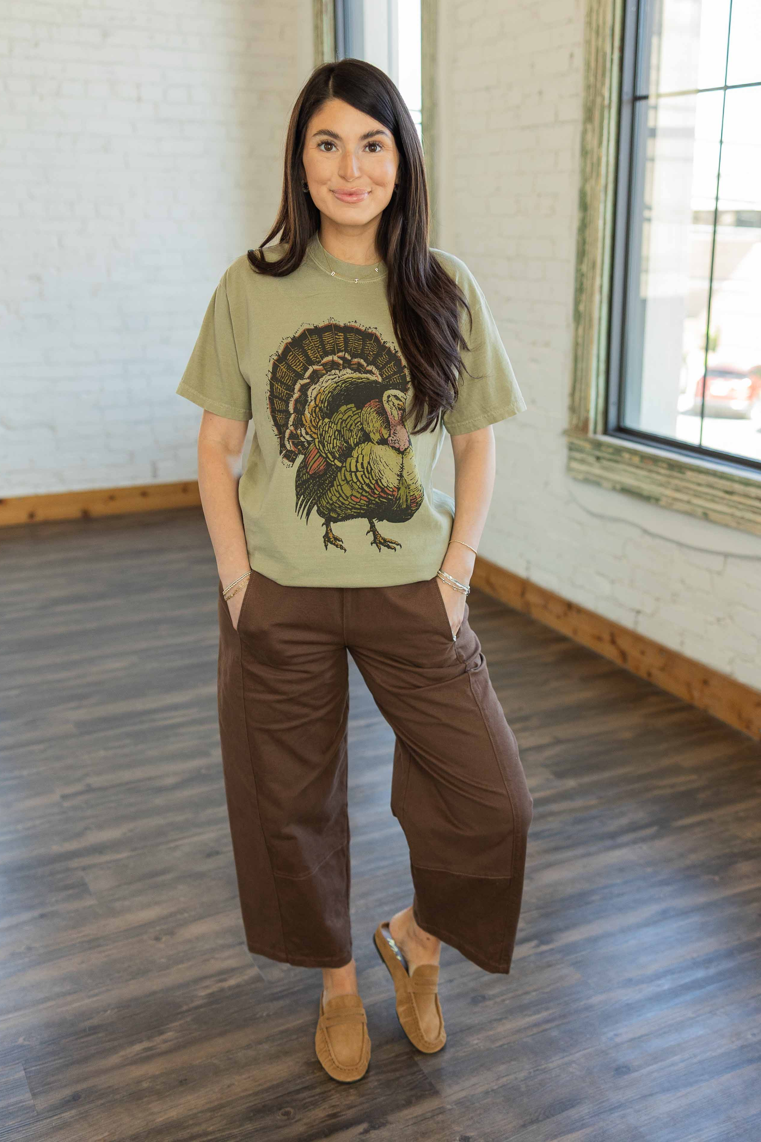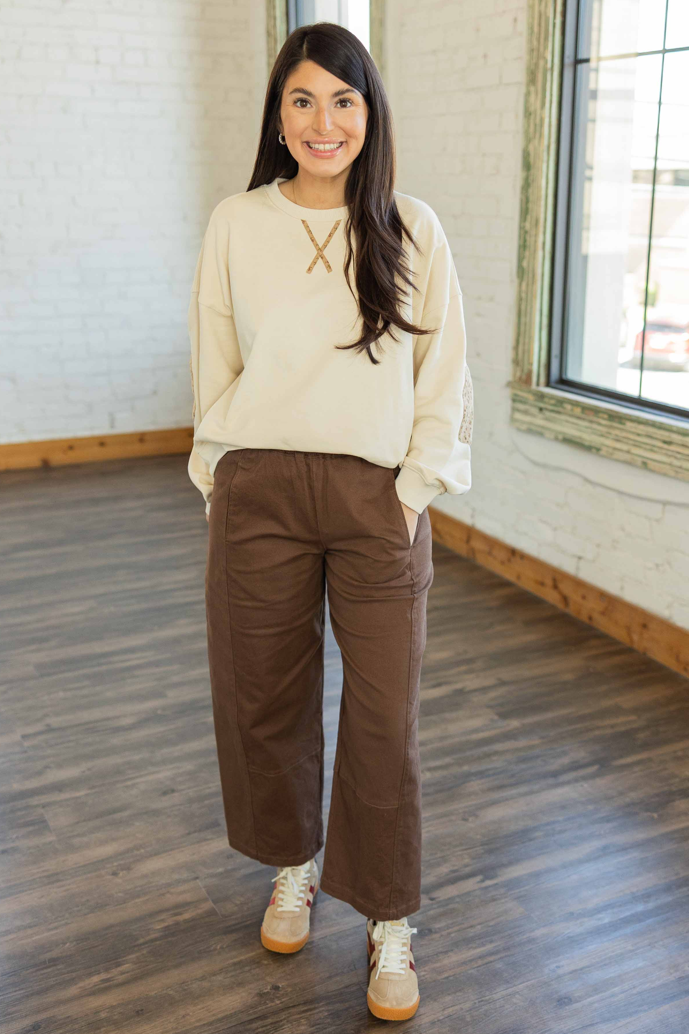 Easy, comfy, and effortlessly cool. The Katelyn Pants are made from soft cotton with just enough stretch to move with you. The wide leg and cropped length give them a relaxed vibe, while the elastic waistband keeps things comfy. The rich chocolate brown color pairs perfectly with cozy sweaters, neutral tops, or graphic tees.