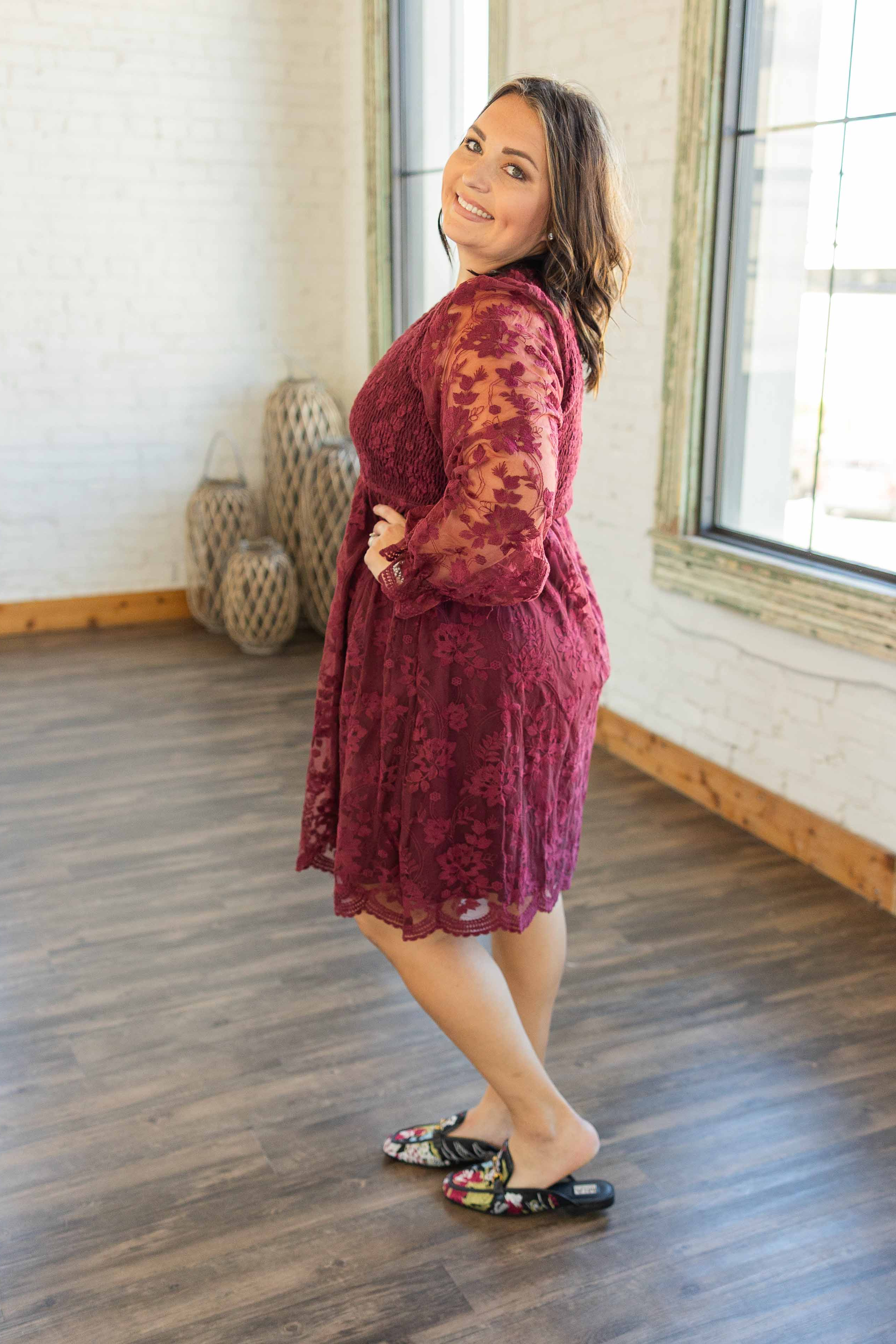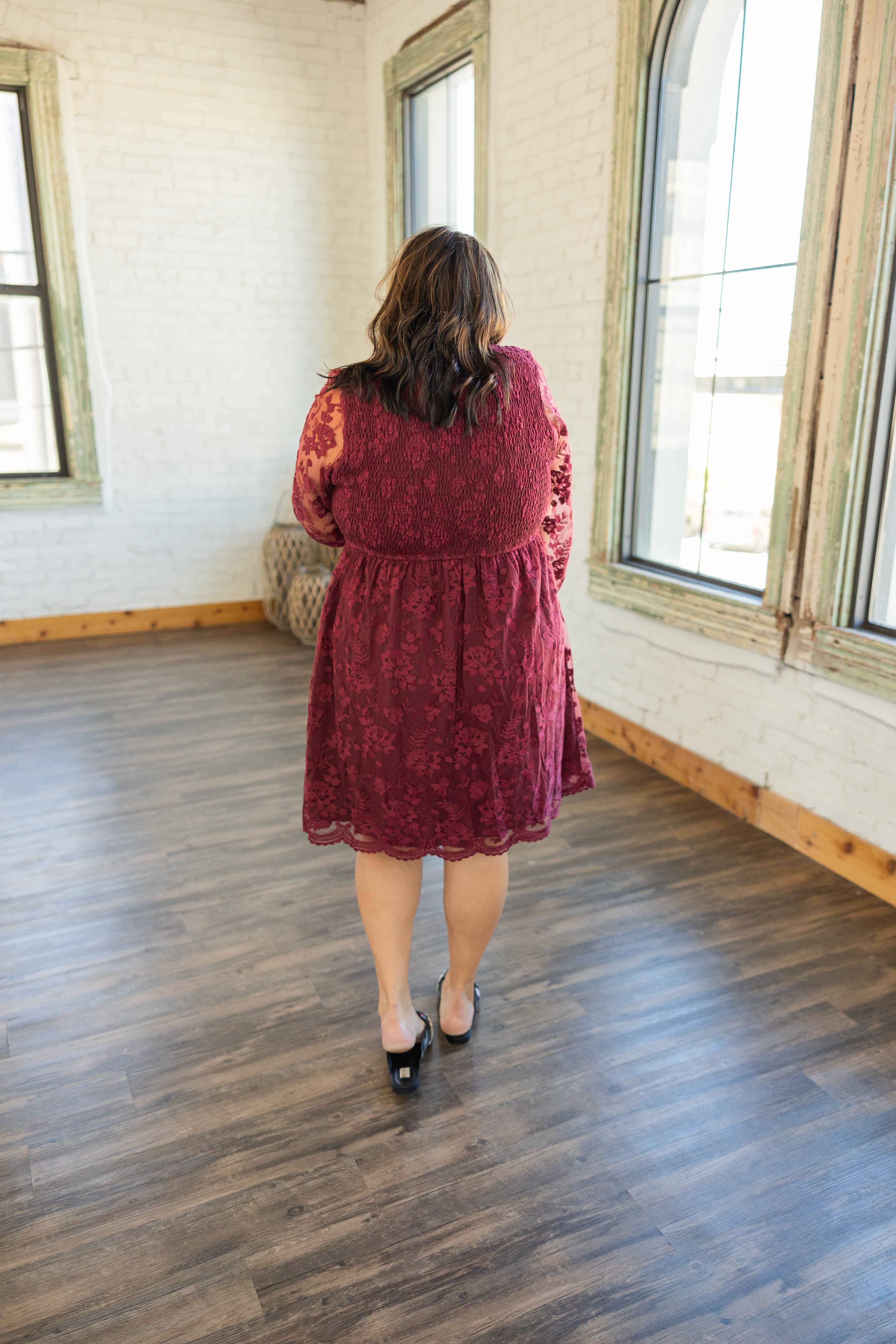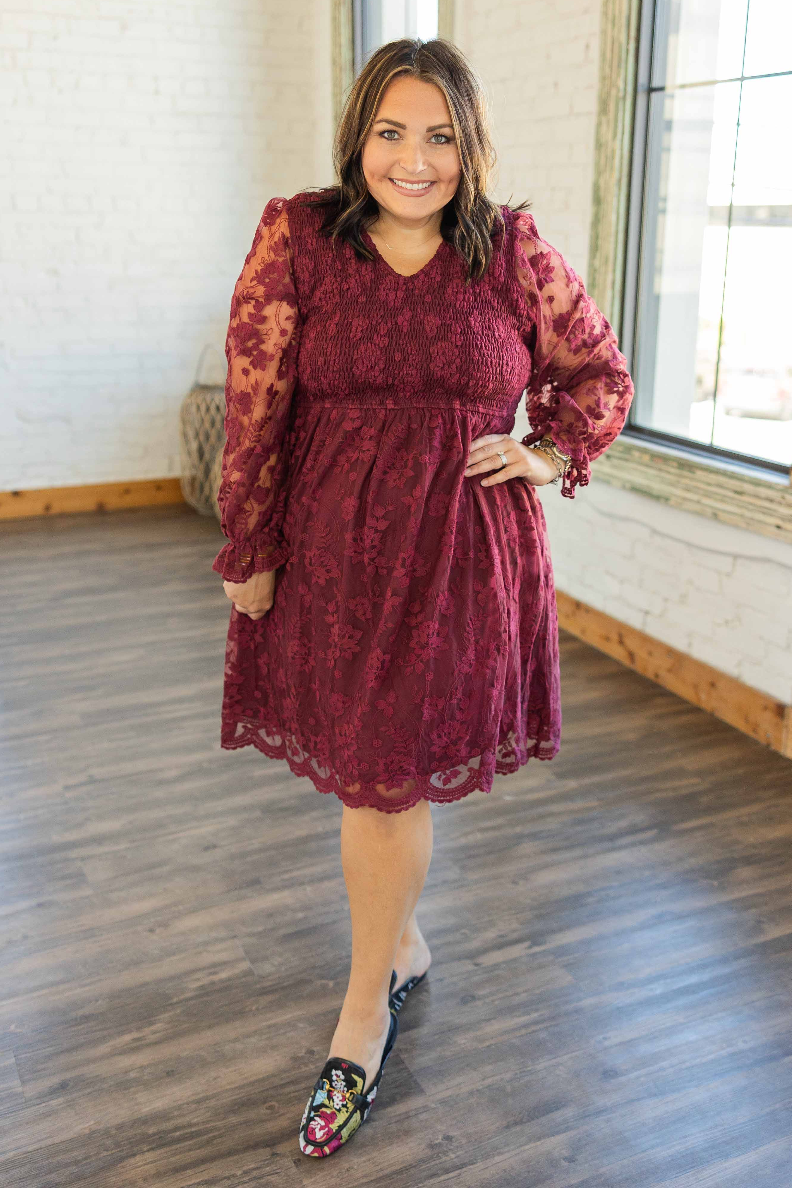 Holiday magic in dress form. The smocked bodice gives you a flattering fit without feeling tight, and the lace sleeves bring the drama in the best way. The scallop hem adds just enough fancy. Hidden pockets hold the essentials so you can keep sipping your cocktail with ease. It is that dress you put on when you want compliments to just… roll in.