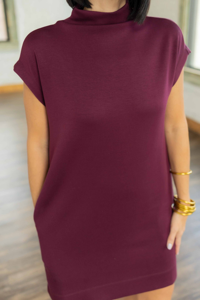 The Eva Plus is proof that simple can still be stunning. This rich maroon pullover mini dress is made from an ultra buttery soft fabric that feels as good as it looks. The relaxed fit, cap sleeves, and mock neck give it that effortless cool-girl vibe, and yes, it has pockets. Dress it up with boots or keep it casual with sneakers—either way, it’s an instant favorite.