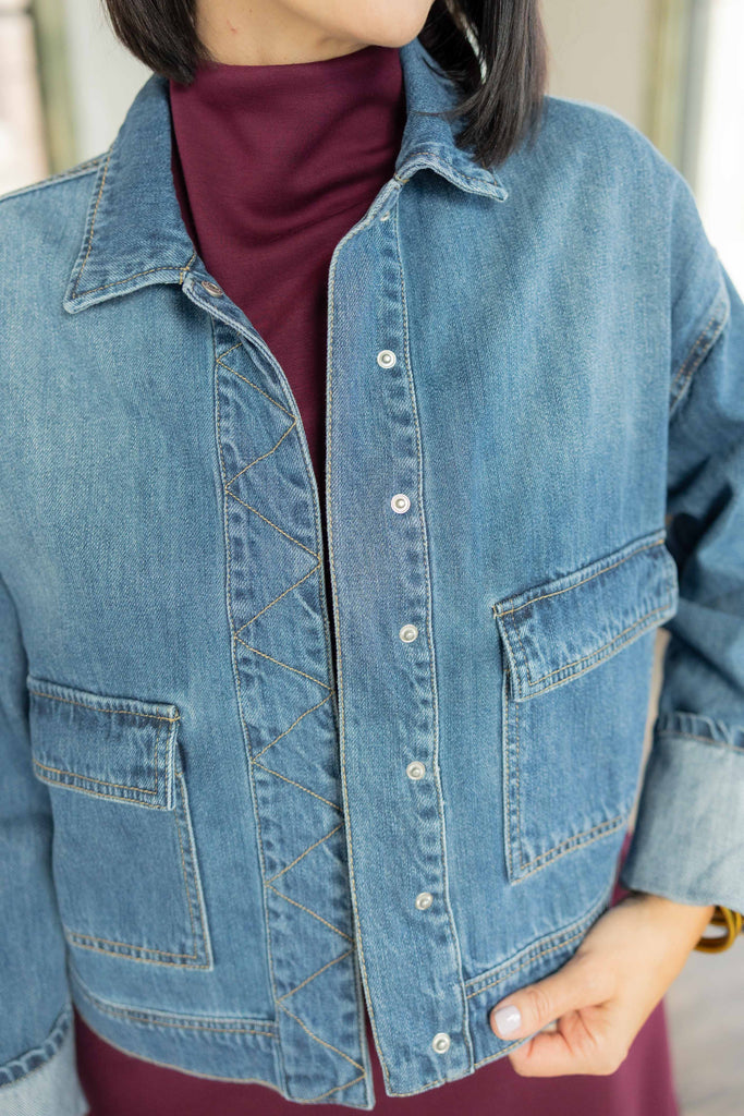 The Isabel is the denim jacket you’ll reach for again and again. Made from 100% cotton, it has that perfect broken-in feel with just enough structure to elevate any outfit. The relaxed fit layers easily over dresses, tees, or sweaters, and the snap button closure keeps it casual yet polished. Finished with front pockets for that effortless, throw-on-and-go style we love.