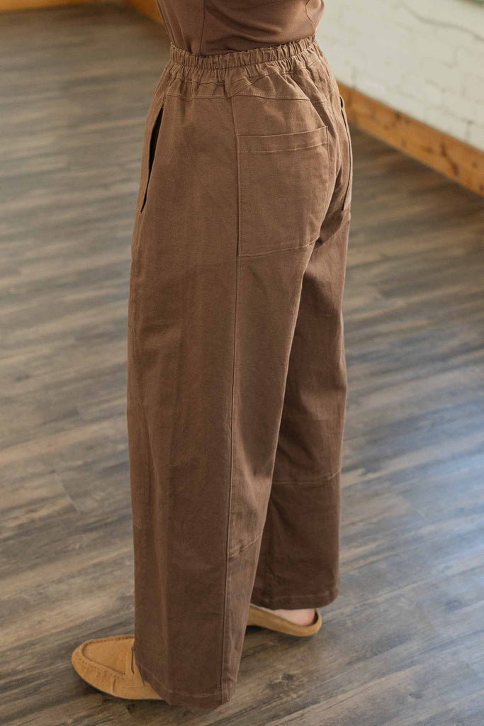 Easy, comfy, and effortlessly cool. The Katelyn Pants are made from soft cotton with just enough stretch to move with you. The wide leg and cropped length give them a relaxed vibe, while the elastic waistband keeps things comfy. The rich chocolate brown color pairs perfectly with cozy sweaters, neutral tops, or graphic tees.