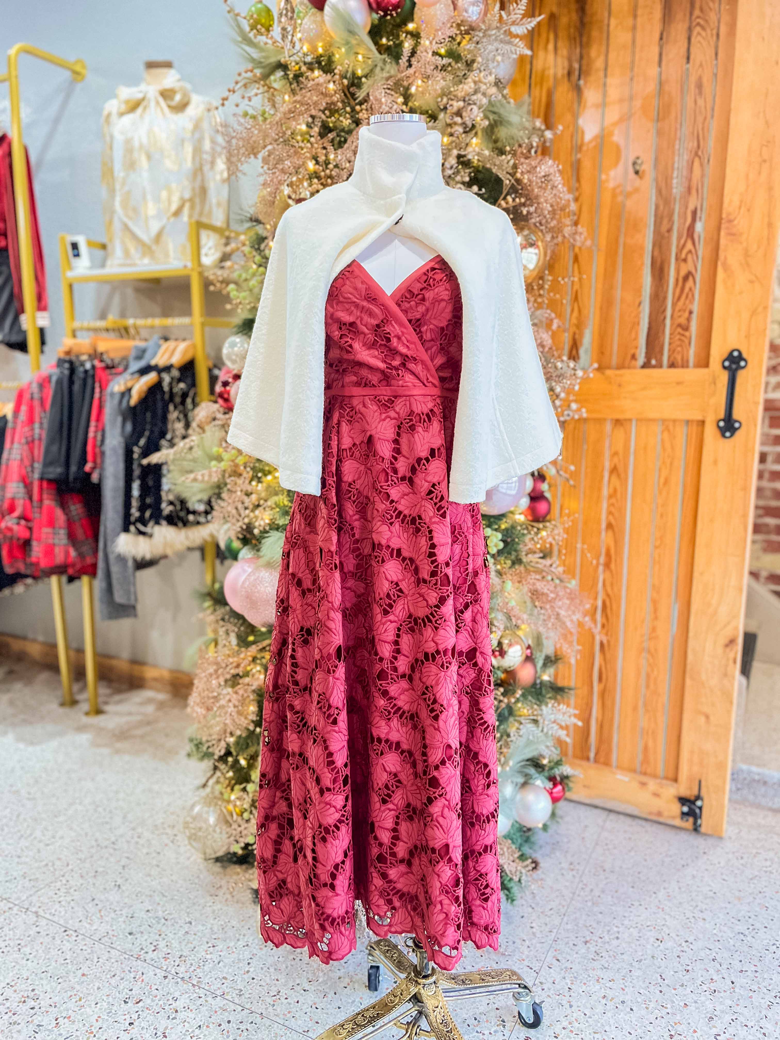 A chic little layer that pulls your whole holiday look together. The Nina gives you that polished cape moment without the bulk. The tall collar frames your neckline, the clasp keeps everything neat, and the soft winter white color plays well with every dress in your closet. It feels luxe thanks to the wool blend, and it floats right over your shoulders with that easy cape silhouette you can throw on and go. Perfect for Texas winters when you want to feel festive without overheating.