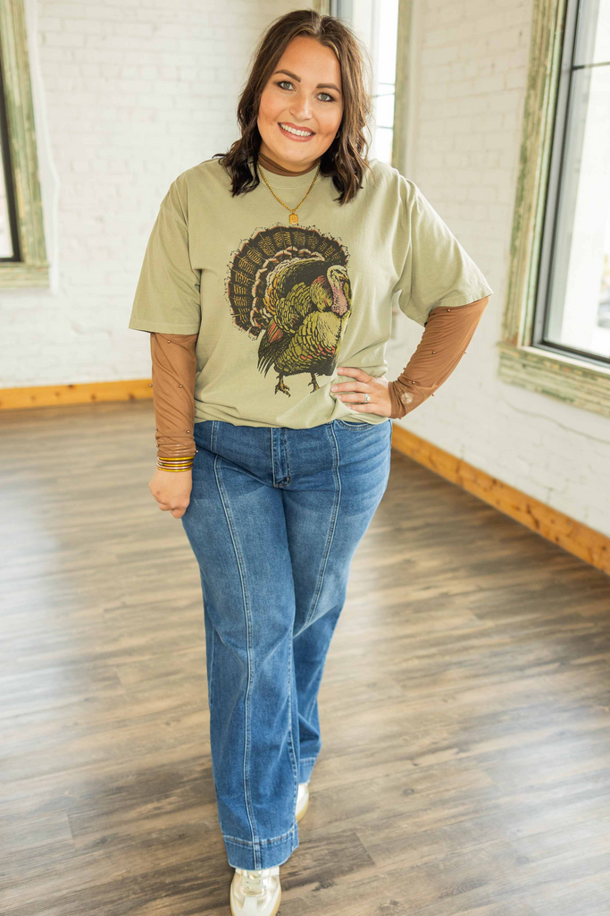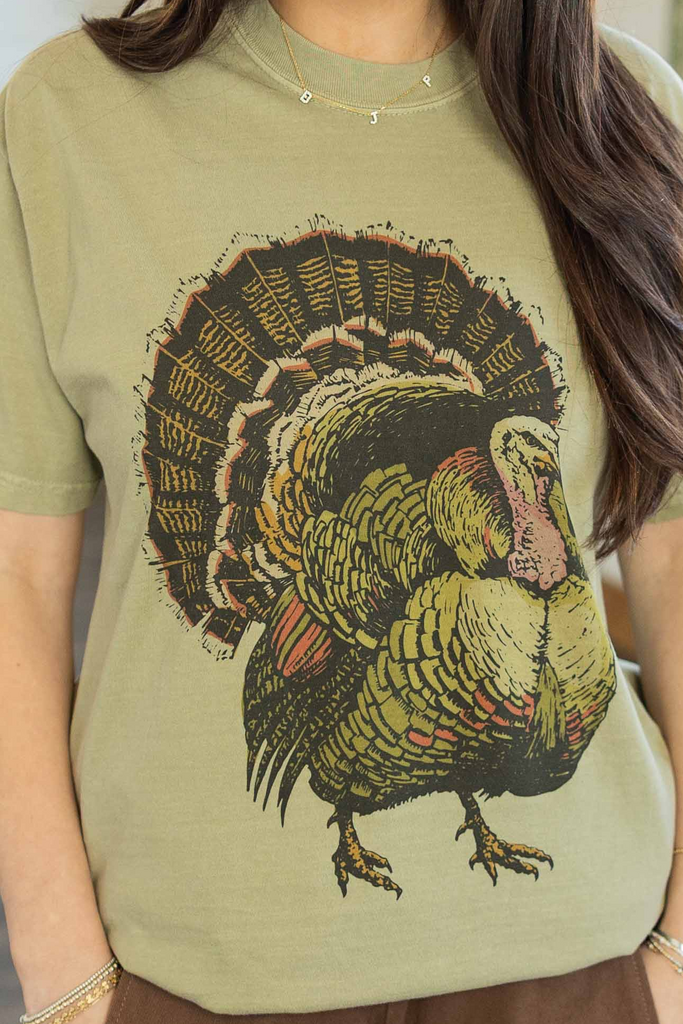 Feast your eyes on the ultimate Thanksgiving tee. The Talk Turkey To Me graphic brings a retro vibe with its vintage-style turkey print on a comfy sage green Comfort Colors tee. It’s soft, relaxed, and made for that post-pie nap you know is coming.