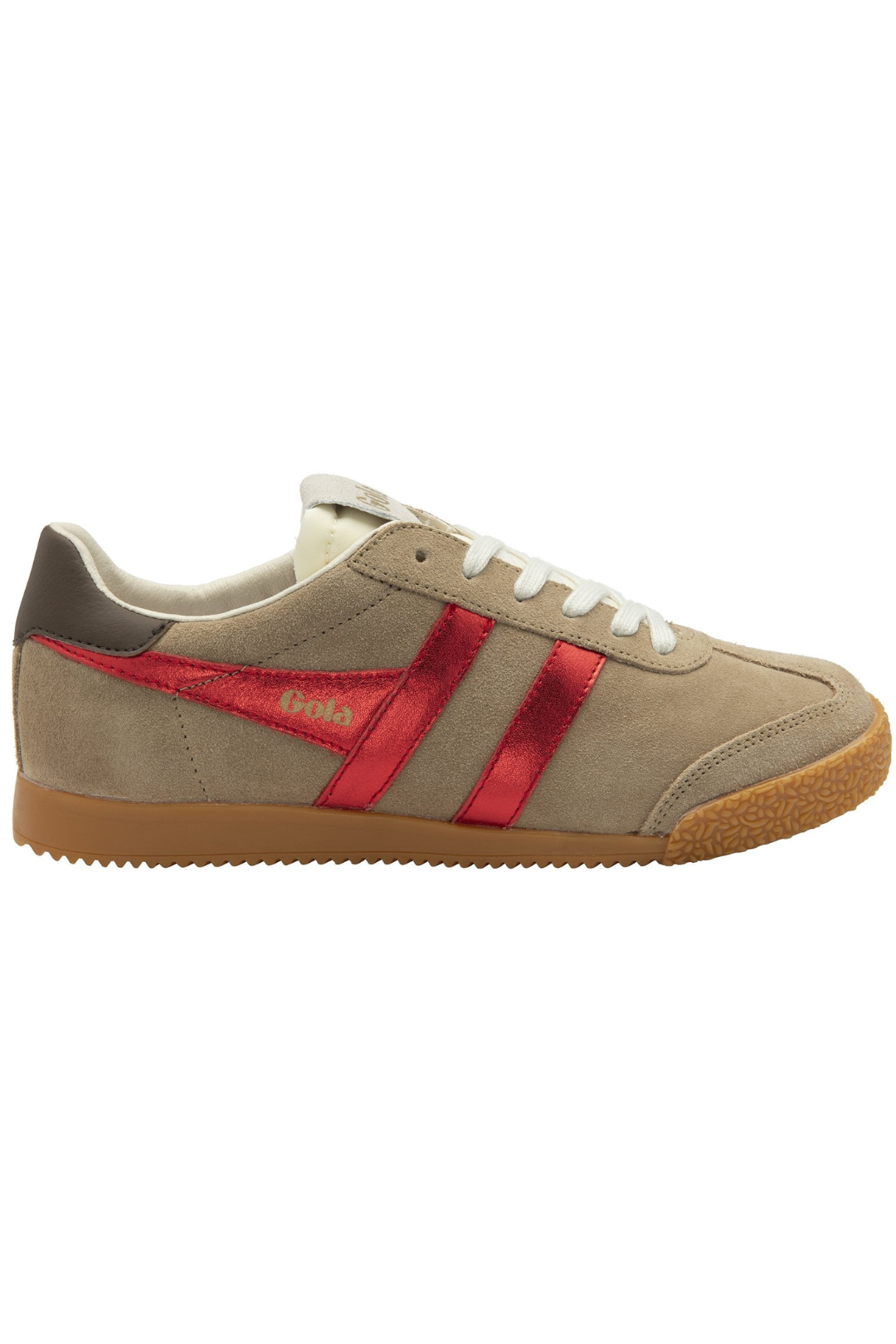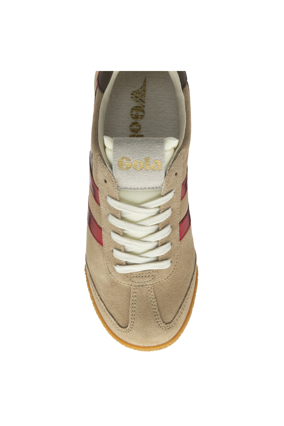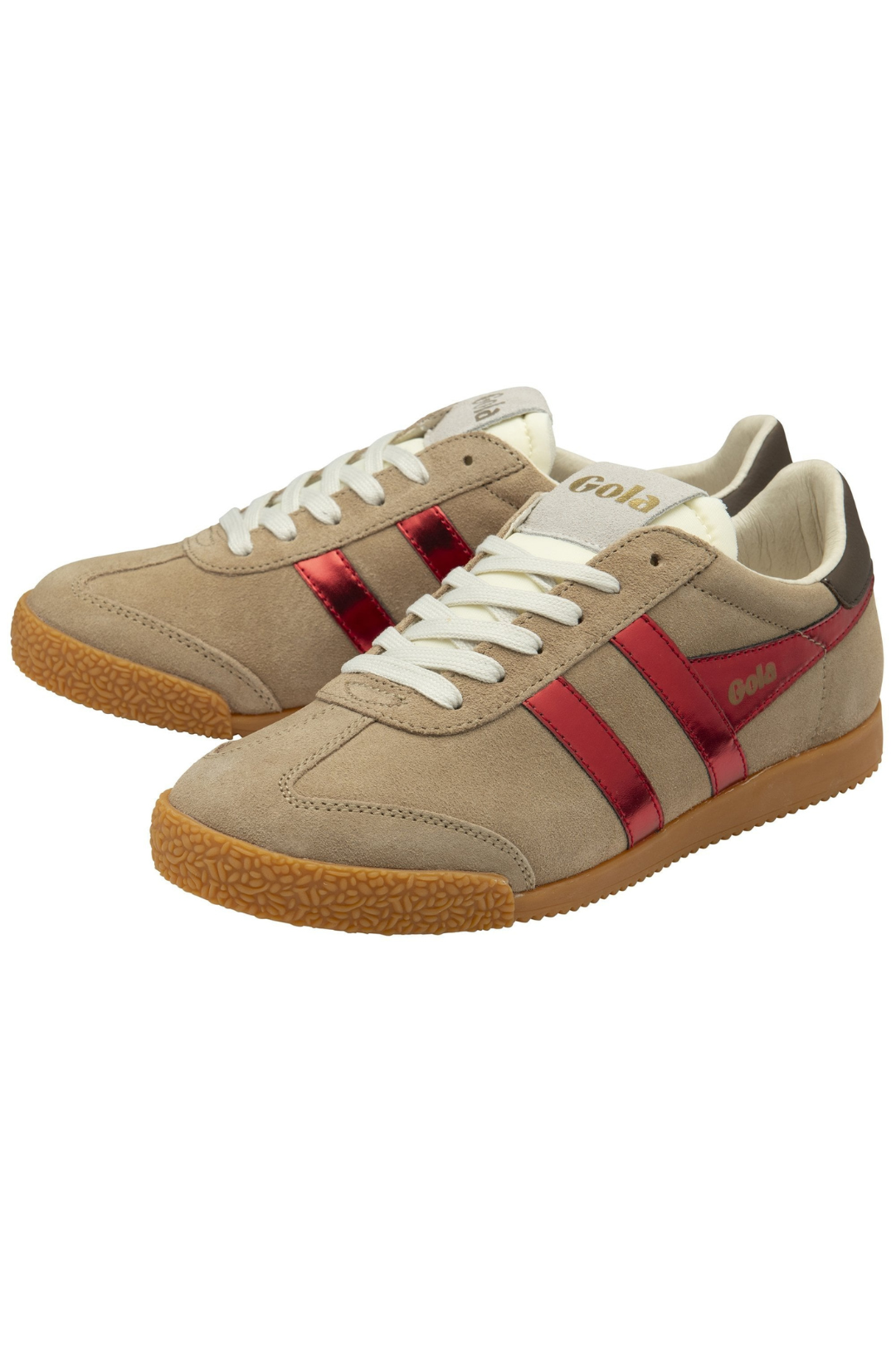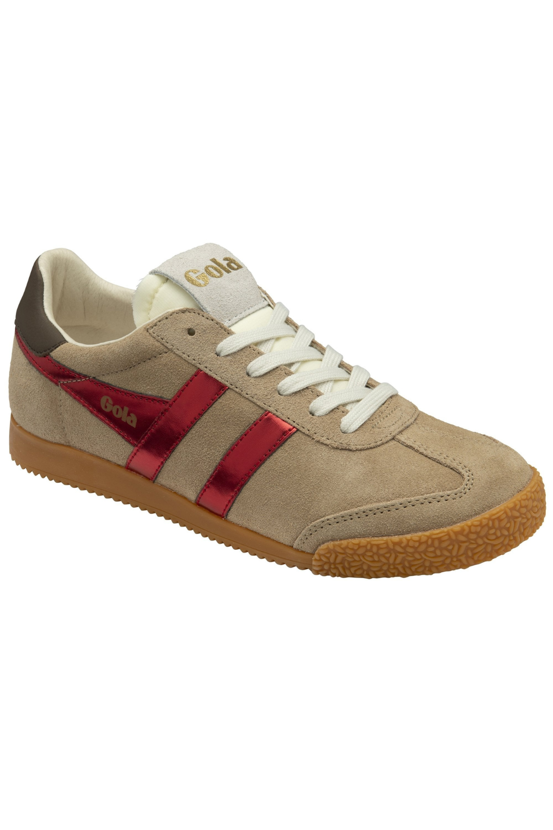 A new addition to the iconic Elan family, Gola Elan Glitz revises the signature Gola wingflash with a dose of rich metallic red tones to compliment the caramel suede upper and dark brown back heel tab. With opulent colour stories taking center stage, enjoy transitioning this classic women’s sneaker from day to night with ease.