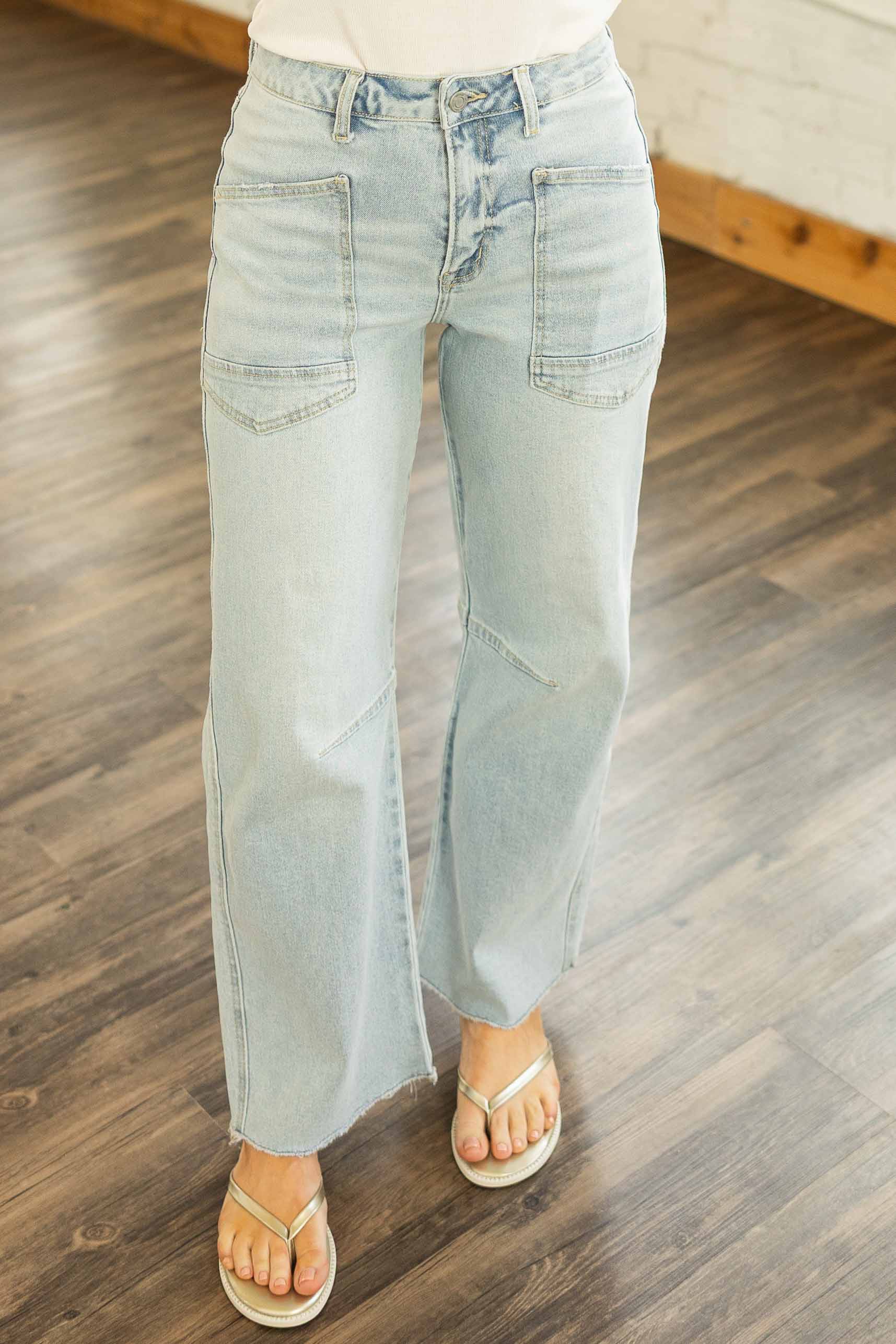 Meet your new favorite everyday denim. The Kate Light HR Barrel Jeans by Vervet feature a soft light wash denim that feels fresh, easy, and ready for warm weather styling. The super high rise waist gives a flattering shape while the relaxed barrel leg keeps things modern and comfortable. Patch pockets add a little vintage charm and the cropped raw hem keeps the look casual and effortless.