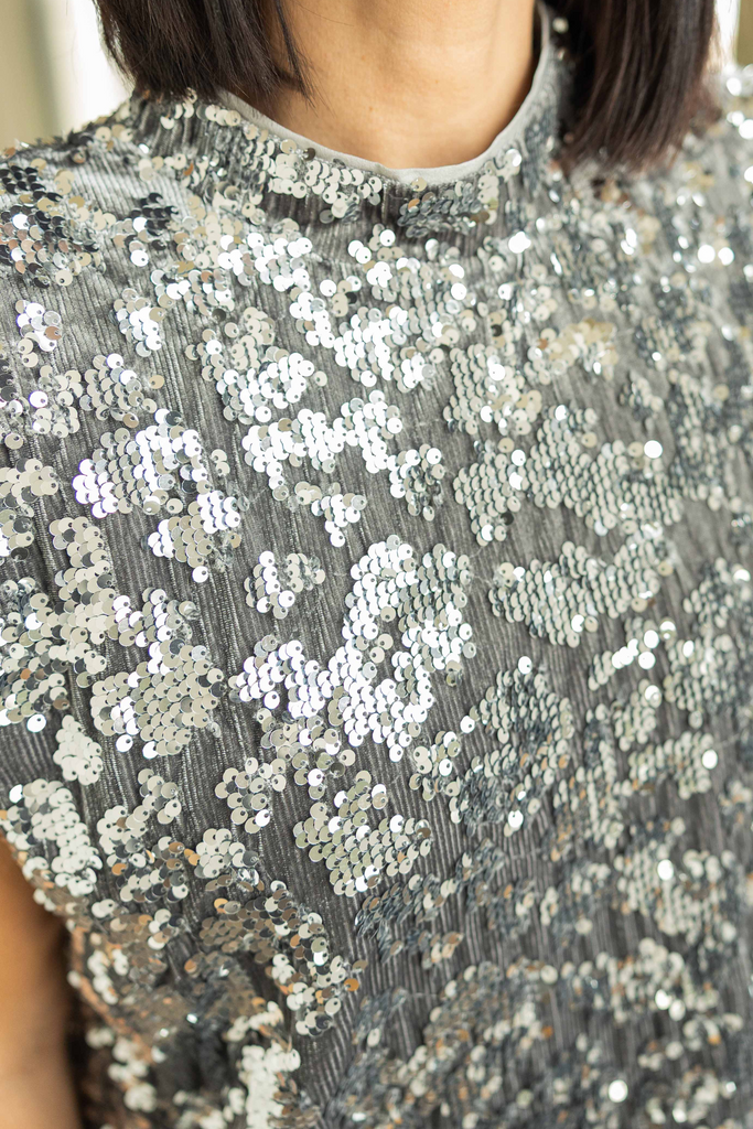 DELLA SHORT SLEEVE SEQUINED MOCK NECK TOP