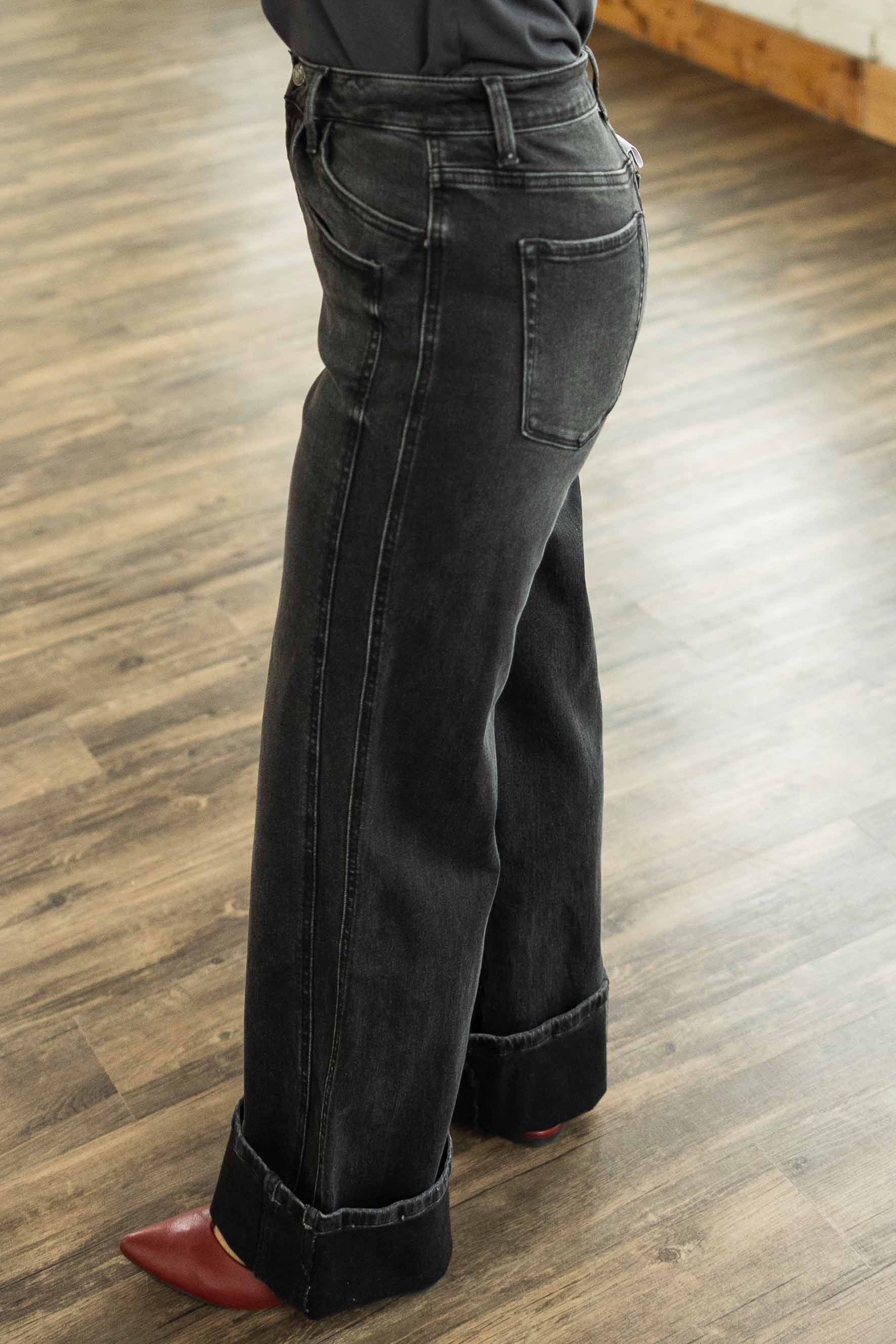 [VERVET] KRIS BLACK BAGGY CUFFED WIDE LEG JEANS