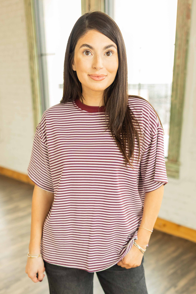 EILEEN OVERSIZED STRIPED RINGER TOP