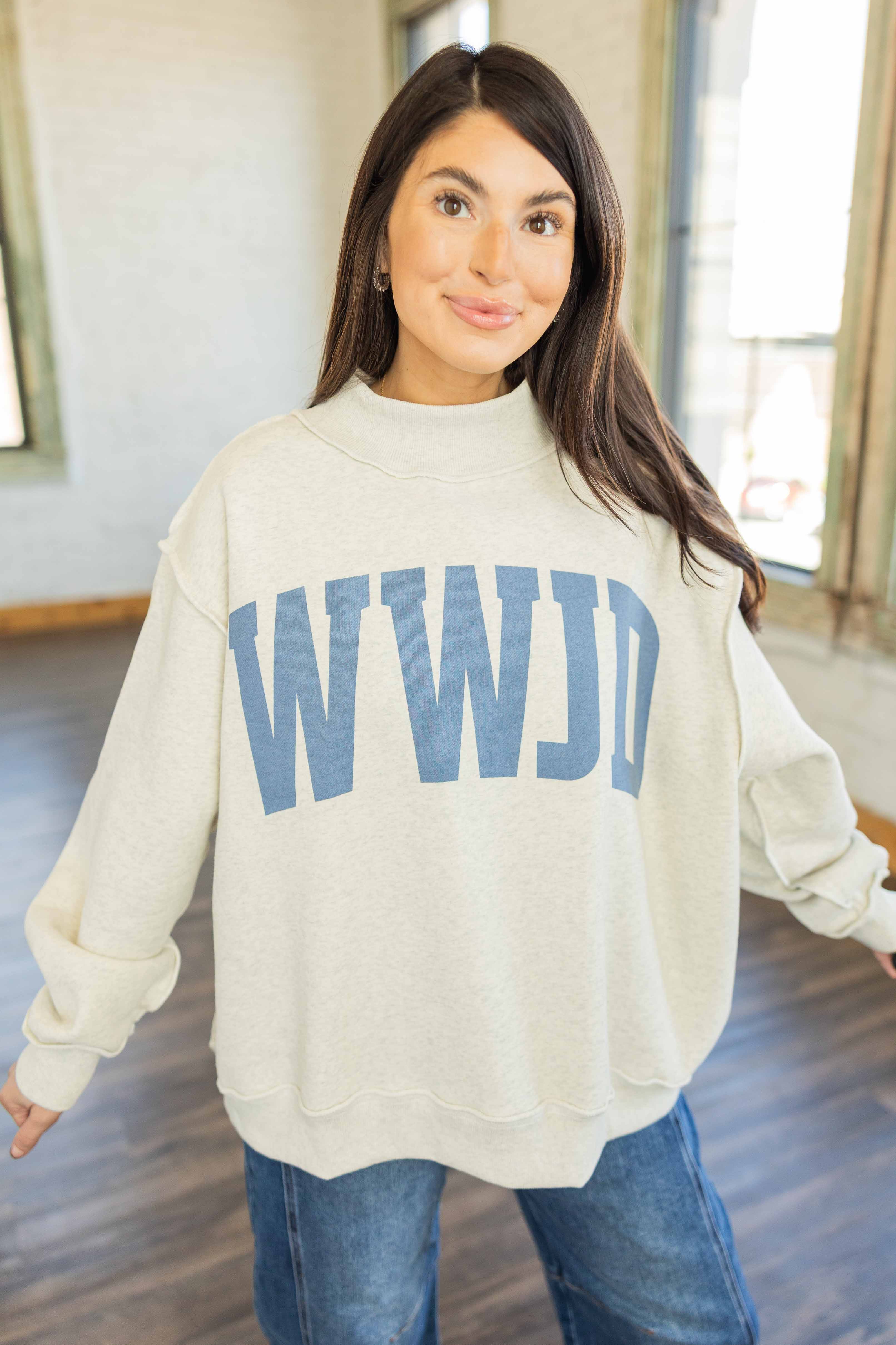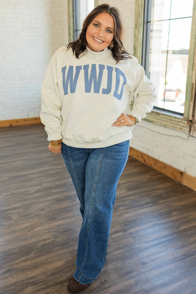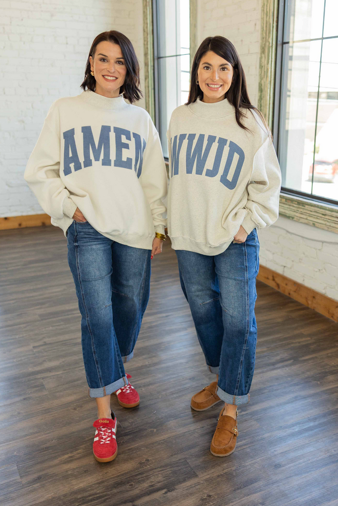 Two looks, one sweatshirt. The WWJD/AMEN Mock Neck Sweatshirt is soft, oversized, and totally reversible. One side says “WWJD,” flip it and you’ve got “AMEN.” Made with cozy fleece, it’s perfect for chilly mornings, lazy Sundays, or just when you can’t decide what kind of mood you’re in.