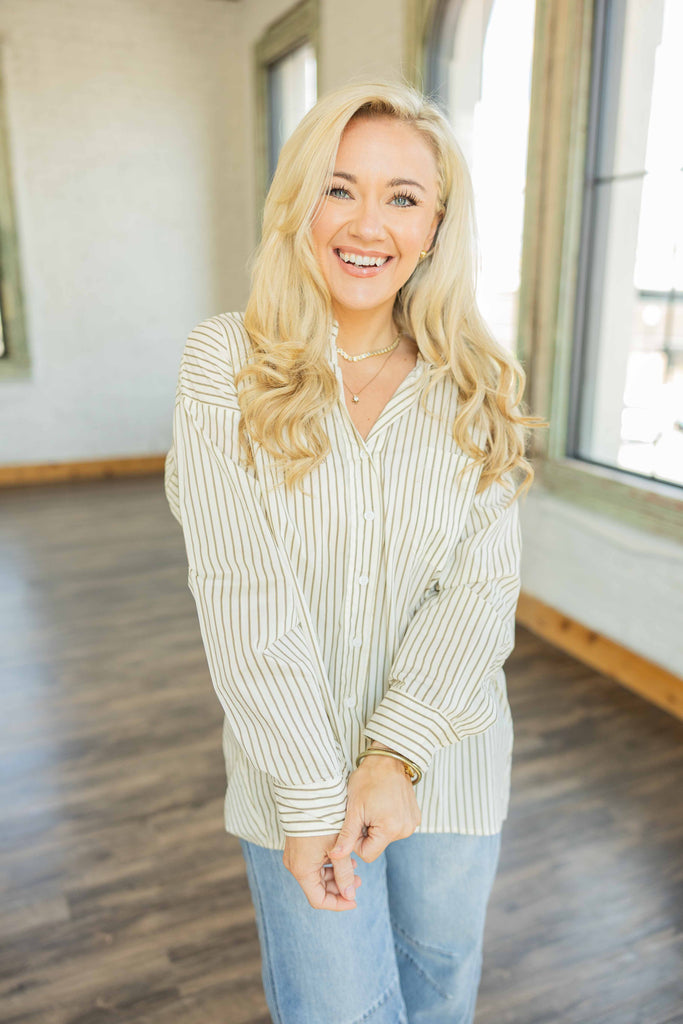 AMIYAH BOYFRIEND STRIPED BUTTON UP TOP
