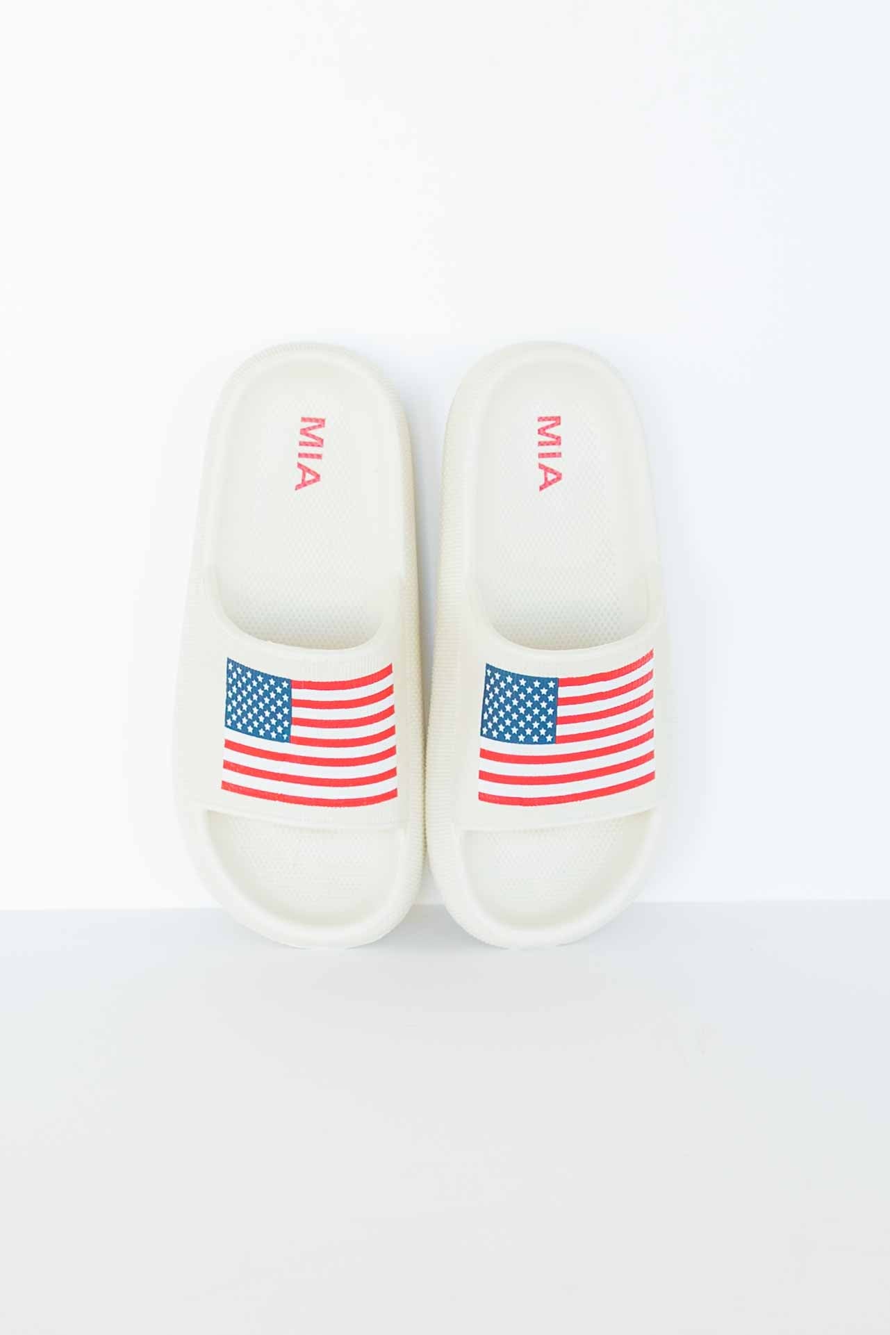The ARIZONNA FLAG SLIDE is here for your poolside adventures. This sandal is crafted with a thick rubber sole and thick strap