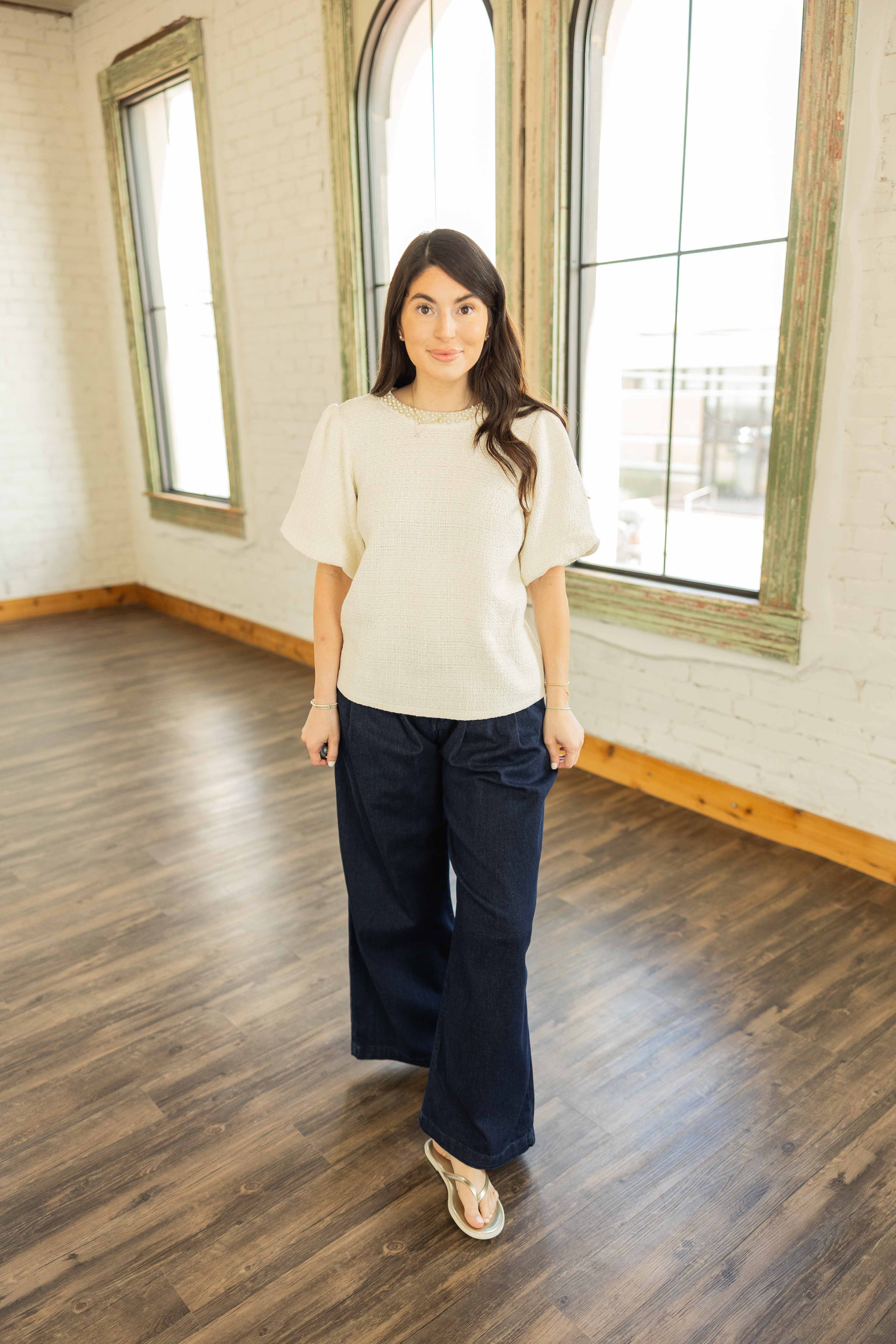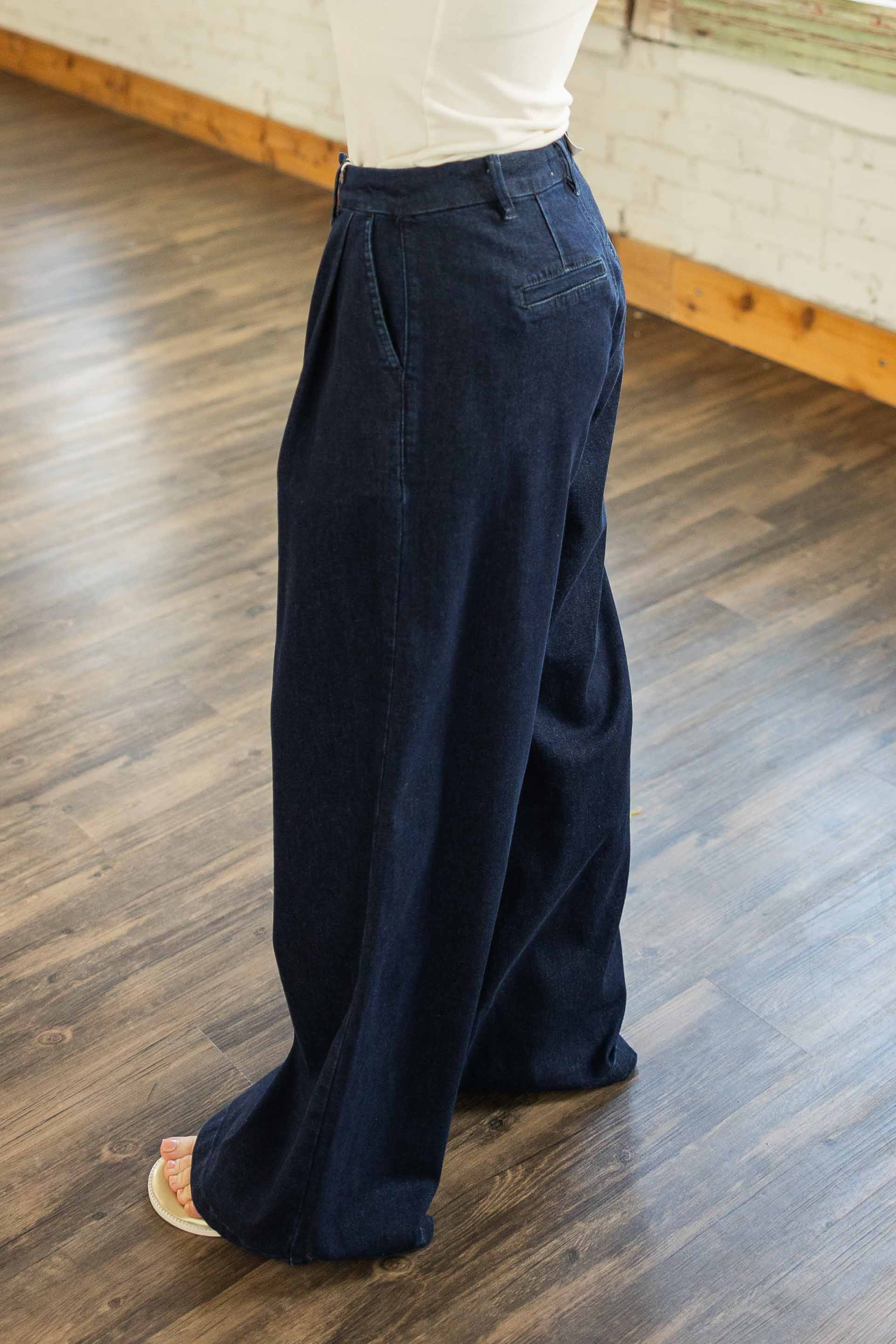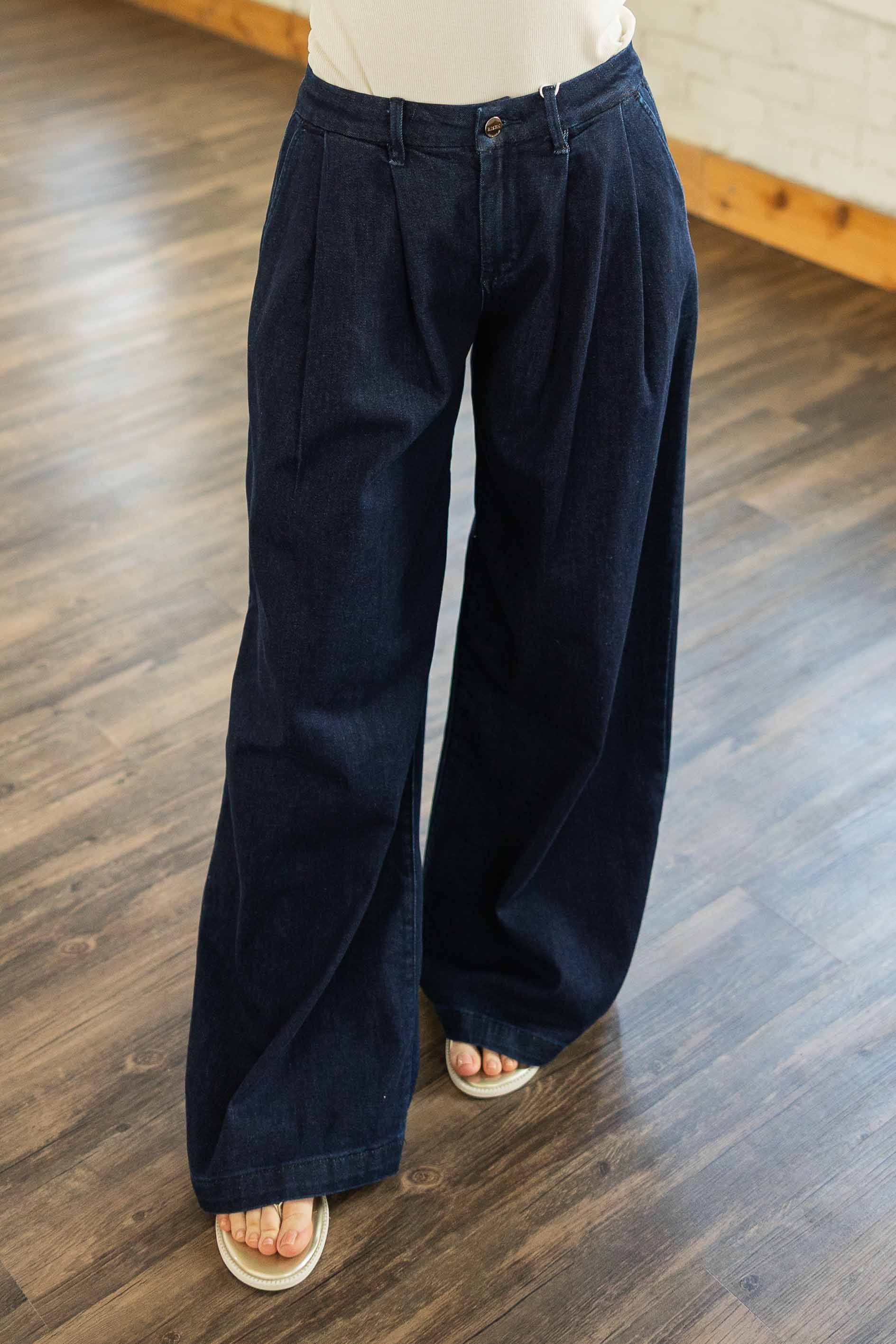 If “cool girl denim” was a person, it would be these. A deep dark wash with that perfectly slouchy, wide leg silhouette that gives you instant outfit energy. They sit high, drape just right, and have that easy movement that makes you feel like you know what you’re doing. Dress them up with a blouse or keep it casual with a tee, either way they’re doing the heavy lifting.