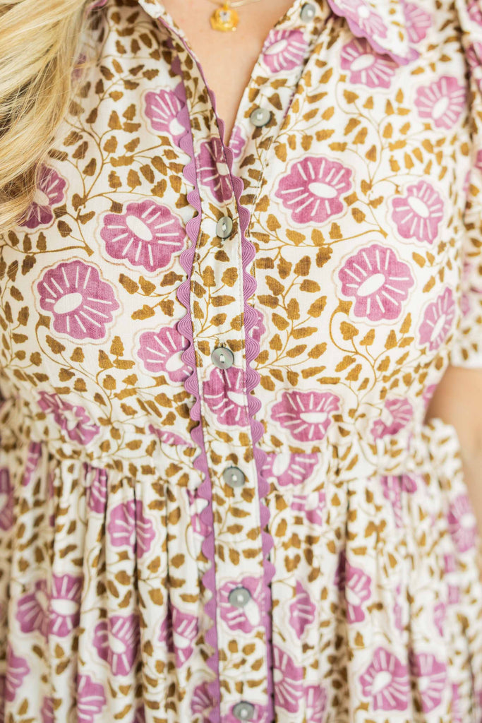 You know that dress that just gets you? That’s the Elaina Midi Dress. Featuring a soft, lightweight texture and the dreamiest floral print in dusty purple, olive, and cream—this beauty brings the cozy color palette you need to float from late summer into early fall (aka peak layering szn 🍂).