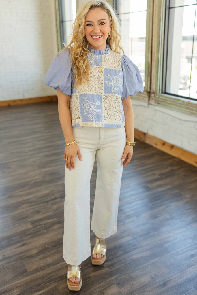 EVIE PATCHWORK STRIPED BUBBLE SLEEVE TOP