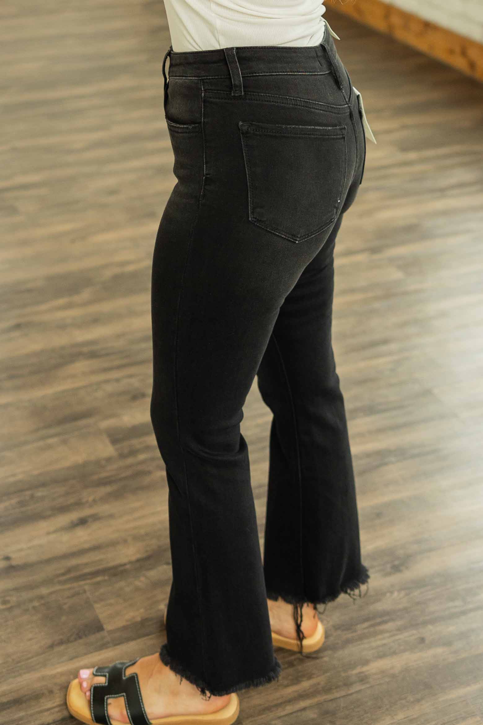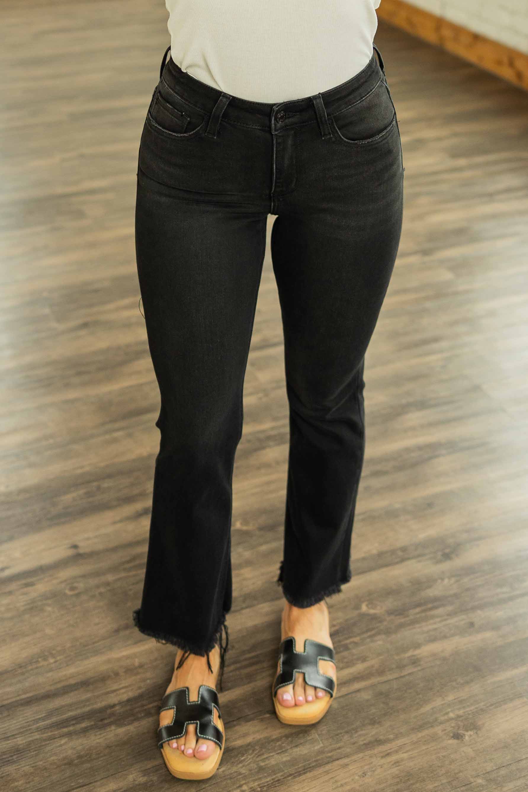 Meet the jeans that get compliments every. single. time. The Lillian Plus Mid Rise Crop Flare Jeans bring that lived-in black wash, soft stretch denim feel, and a raw hem that says “yeah, I’m cool but I didn’t try too hard.” The cropped flare silhouette is super flattering and gives just enough kick at the ankle—perfect for showing off your cutest sneakers or booties.