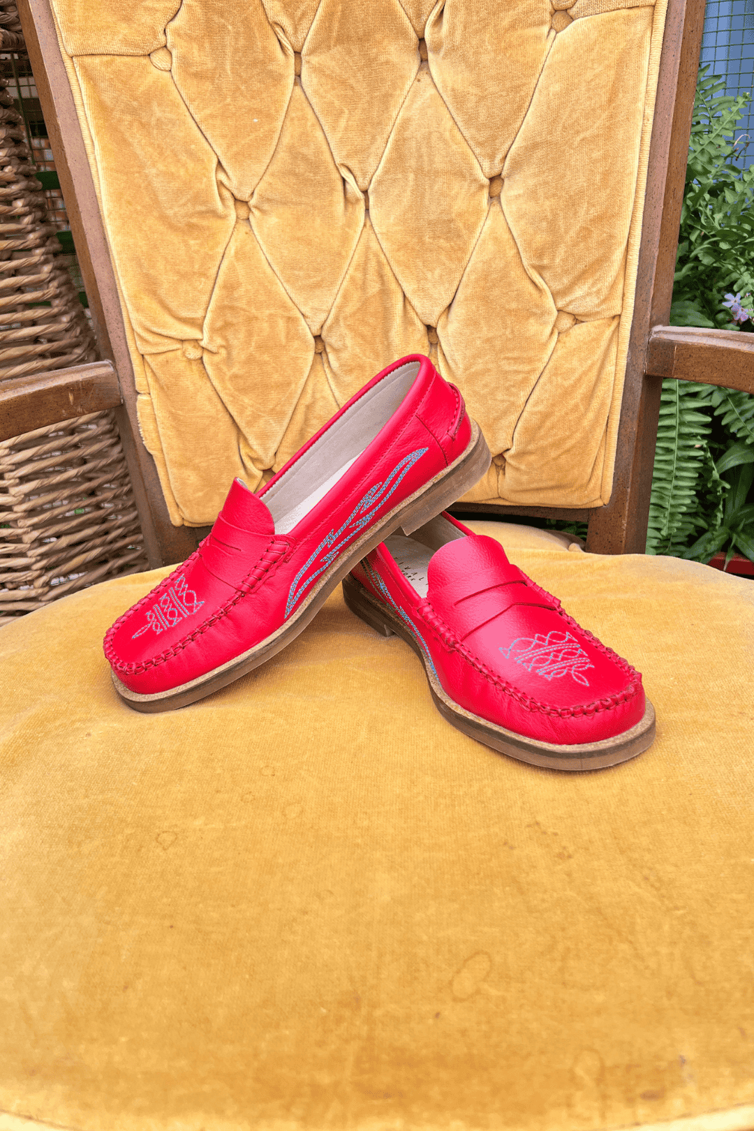 Meet Monaco RED—the Stivali and Ruby & Yaya collaboration Western leather loafer that turns any outfit into a little moment. Smooth leather lines, contrasting turquoise western boot stitching detail keeps things just the right kind of unruly. From breezy dresses to lived-in denim, they’re the shoe you’ll reach for on repeat, year round.