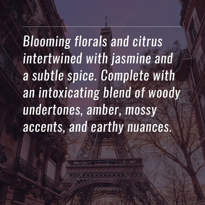 Blooming florals and citrus intertwined with jasmine and a subtle spice. Complete with an intoxicating blend of woody undertones, amber, mossy accents, and earthy nuances, creating a captivating allure that lingers beautifully throughout the day.