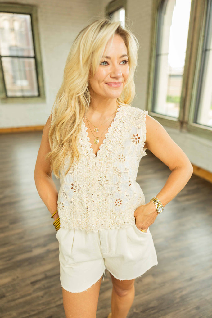 REAGAN LACE TRIMMED CROCHET VEST TOP