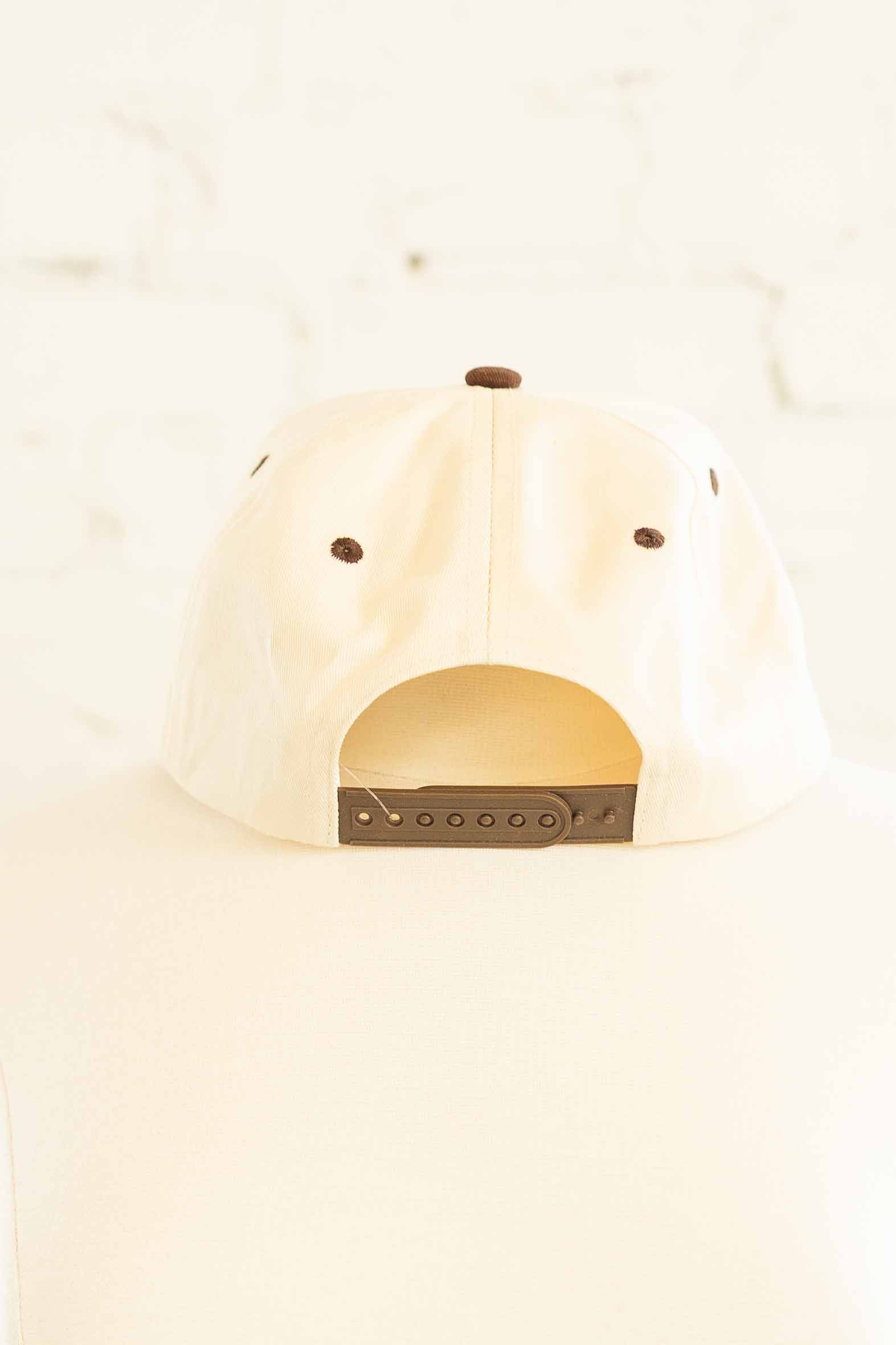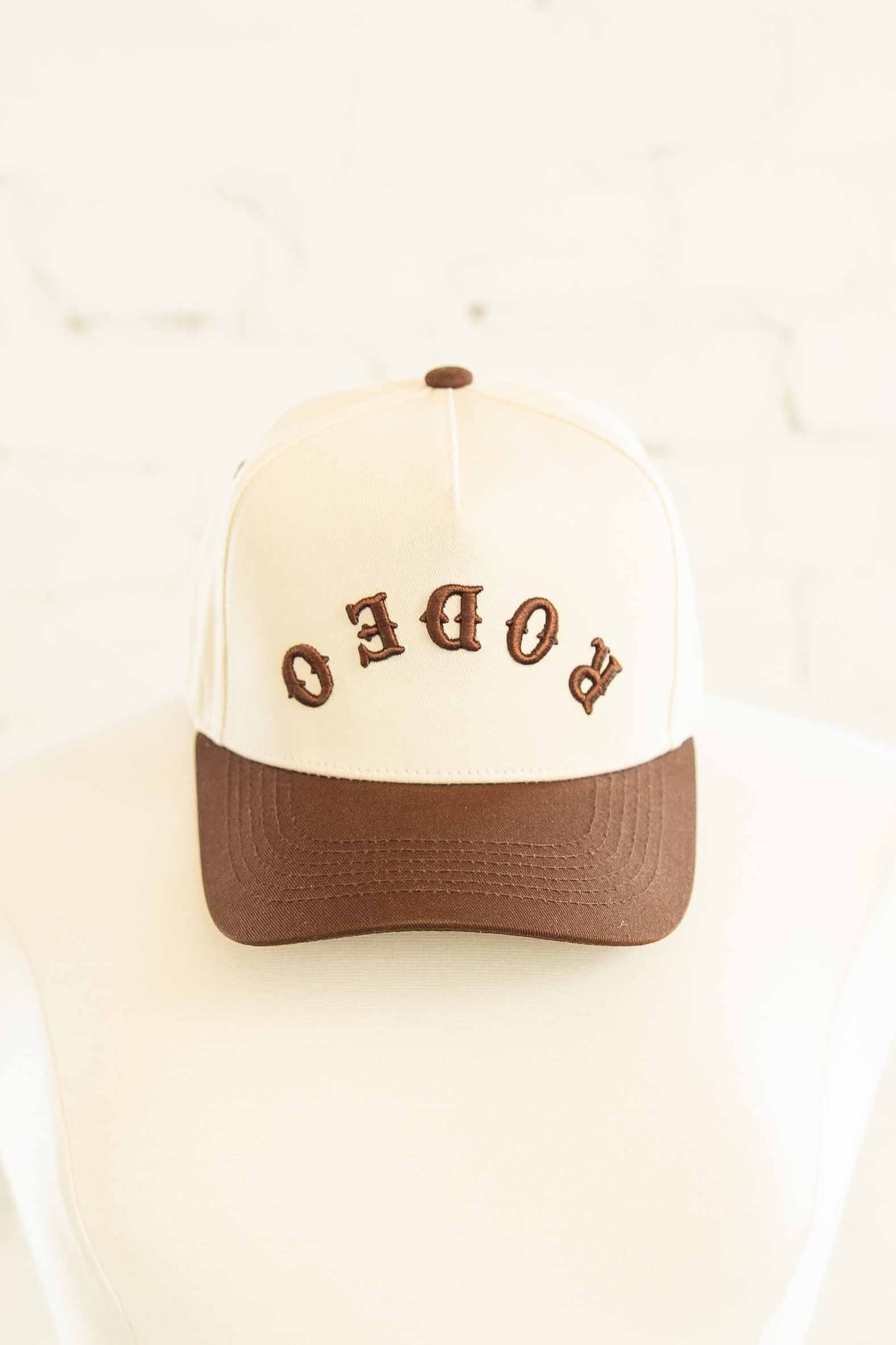 Yeehaw but make it fashion. This cream and brown snapback brings just the right amount of Western sass. The upside down brown embroidered “RODEO” gives it that cool girl twist, while the matching brown bill keeps it grounded and easy to style. It’s the grab and go hat for bad hair days, stock show Saturdays, and every iced coffee run in between.